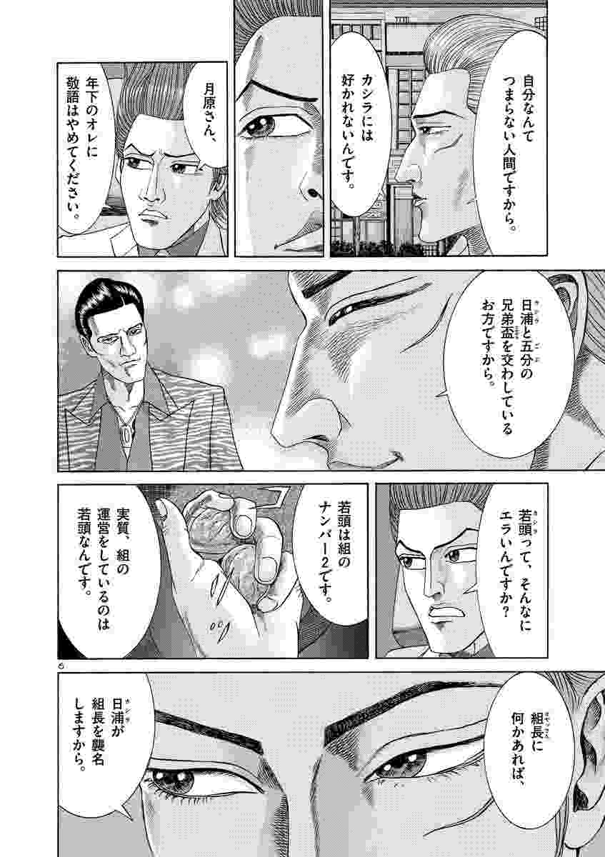 ●あらすじ/組長からもらった外車で、初めて阿湖義組の事務所を訪れた玲二。覚せい剤・MDMAの密売に月原が絡んでいると睨んだ玲二は、応接室で二人きりになったさい、尻尾をつかむためイチかバチかの賭けに出る。それは自分がMDMAを1万錠入手できるとうそぶき、換金ルートを聞き出そうというもの。所持していたMDMAの小袋まで見せつける玲二だが、月原は「ウチはやってない」の一点張りで…(第31~32話)。