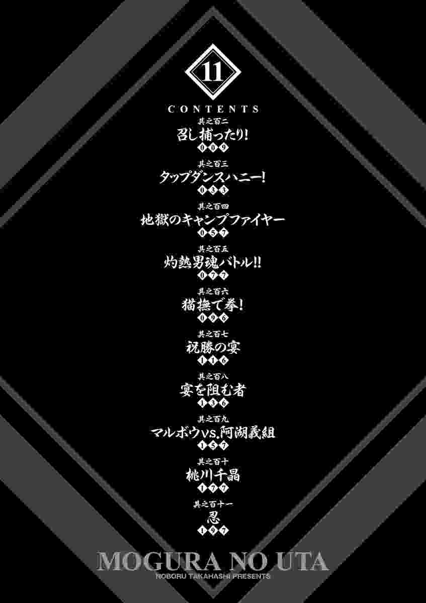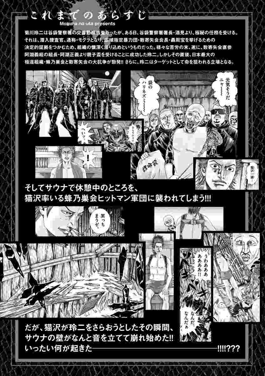 ▼第102話/召し捕ったり!▼第103話/タップダンスハニー!▼第104話/地獄のキャンプファイヤー▼第105話/灼熱男魂バトル!!▼第106話/猫撫で拳!▼第107話/祝勝の宴▼第108話/宴を阻む者▼第109話/マルボウvs.阿湖義組▼第110話/桃川千晶▼第111話/忍●主な登場人物/菊川玲二(元・谷袋署交番勤務の巡査。轟を検挙するべく潜入捜査官<モグラ>となり、阿湖義組の組長・阿湖正義の親子盃を受けた)●あらすじ/サウナで蜂乃巣会のヒットマン・猫沢の襲撃を受けた玲二。だが、これはカムフラージュさせた巨大なオリに猫沢らを捕らえるという、玲二があらかじめ仕掛けた罠だった! 突如としてサウナの壁が崩壊し、ワイヤーに吊られた玲二が脱出すると、後に残されたのは鉄格子の牢屋のみ。まんまと罠にはまり召し捕られた猫沢の周囲には、阿湖義組の幹部たちも取り囲んでいて…(第102話)。●本巻の特徴/猫沢率いる蜂乃巣会ヒットマン軍団との攻防の顛末は…? さらに、祝宴中の阿湖義組にマルボウのガサ入れが入って…!?●その他の登場人物/猫沢一誠(蜂乃巣会系・血引一家若頭補佐)、日浦匡也(阿湖義組若頭。玲二と兄弟分の契りを結ぶ)、阿湖正義(数寄矢会直参・阿湖義組組長)、轟周宝(広域指定暴力団・数寄矢会会長。8000人を束ねるドン)