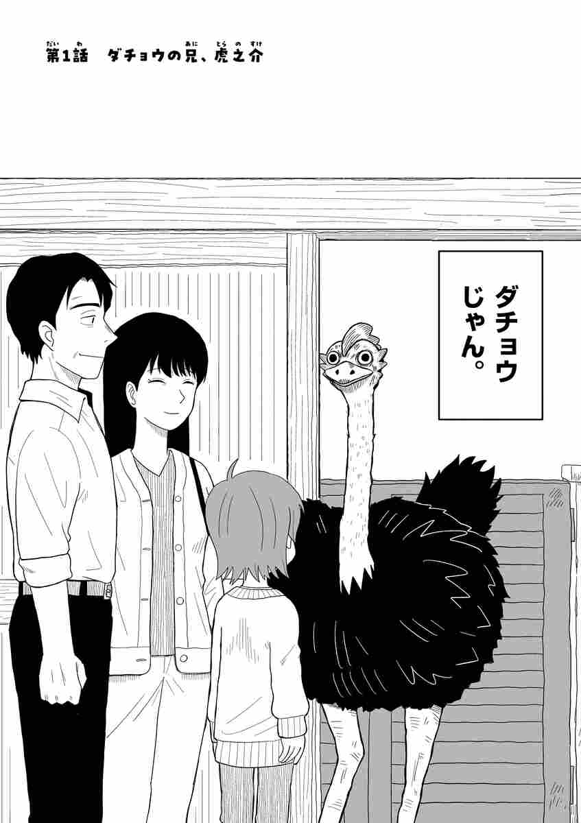 「虎之介」と名乗るダチョウの兄と明美の奇妙な同居生活が始まる。