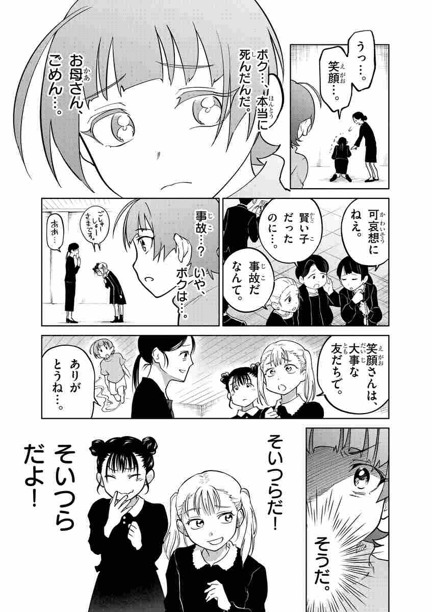 笑顔は現世に戻るため、デスゲームへの参加を決意する。