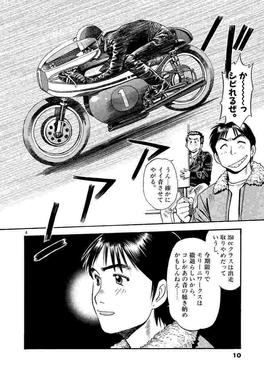 ▼第31~35話/モリーニ (1~5)▼第36話/コーヒーブレイク●主な登場人物/宮城進武(バイク便ライダーをしている19歳。愛車は仕事用がカワサキZZR1100、プライベート用がカワサキZX6R。レナに惚れている)、滝沢レナ(主にイタリアの旧車を扱うバイクショップ「ゴブリン」の店主。宮城が住むマンションの大家の娘で、ルックスは抜群だが男勝りの単車乗り。年齢不詳)●あらすじ/ある日、常連客の伊藤がレナに頼みごとがあるといって現れた。その内容は、癌にかかった友人・矢口のために、40数年前の日本GPで聴いたモリーニのエンジン音をもう一度聴かせたいというもの。矢口が所有しているそのバイクを1か月以内に修理するという困難な依頼を、現物も見ないで即OKしてしまったレナだが、数時間後に届けられたモリーニの状態は…!?(第31話)●本巻の特徴/エンジンがオシャカになっていたモリーニのGPレーサーを走らせるため、レナはパーツからのエンジン製作に奮闘。カヤナギは日本にあるもう1台のGPレーサーを探し、青田はイタリアにある3台のうち1台を探し回る。果たしてモリーニ復活なるか…!?●その他の登場人物/安達カナコ(レナの高校時代からのバイク仲間。かつて「レナカナ」といえば、峠では知られた走り屋コンビだった。愛車はホンダRVFとヤマハTMAX。既婚)、宮城さやか(宮城の妹。短大生。愛車は「ゴブリン」で買ったパリラGSとアスペス・ユーマ)、伊藤昭芳(「ゴブリン」の常連客にして単車マニア。医者)、カヤナギ(GPレーサーの収集家。カヤナギモータースを経営)、青田(バイク販売店「ビジブルウインド」の社長。レナに惚れている)