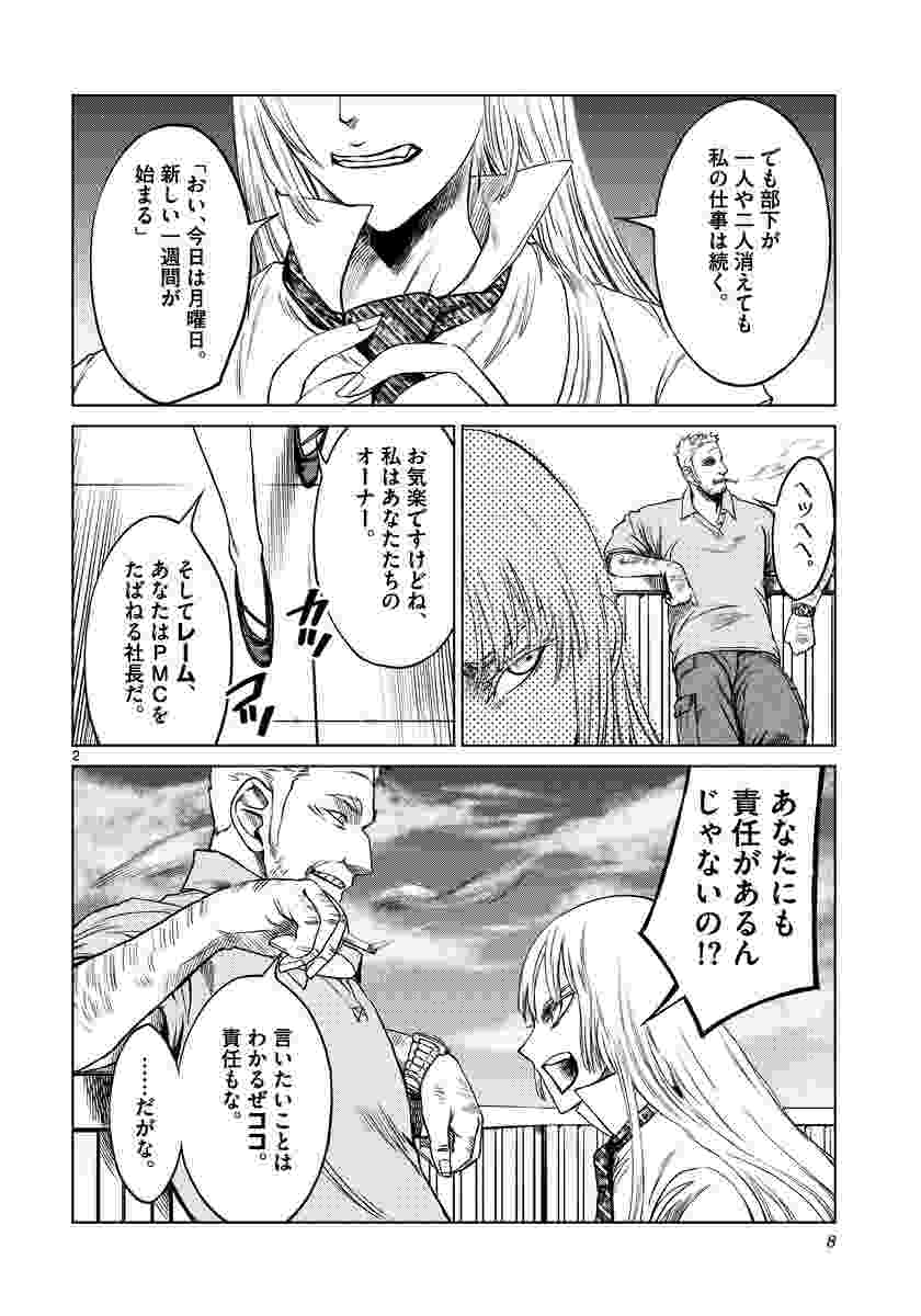 ●あらすじ/バルメが無断で部隊を去り、いつかこんな日が来ると予期してはいたものの、動揺し苛立つココ。ココとバルメ、ふたりの出会いは、バルメが国連軍“ソフィア・ヴェルマー”少佐であった頃、派遣先のアフリカD国で襲撃により部隊を全滅させられ、傷心の彼女をココが自分の部隊に誘ったときだった。そしてバルメが今回、ココと別れD国へやってきたのも、当時の事件が彼女の中で尾を引いていたからなのだが、ヨナもついてきてしまい…(第31話)。