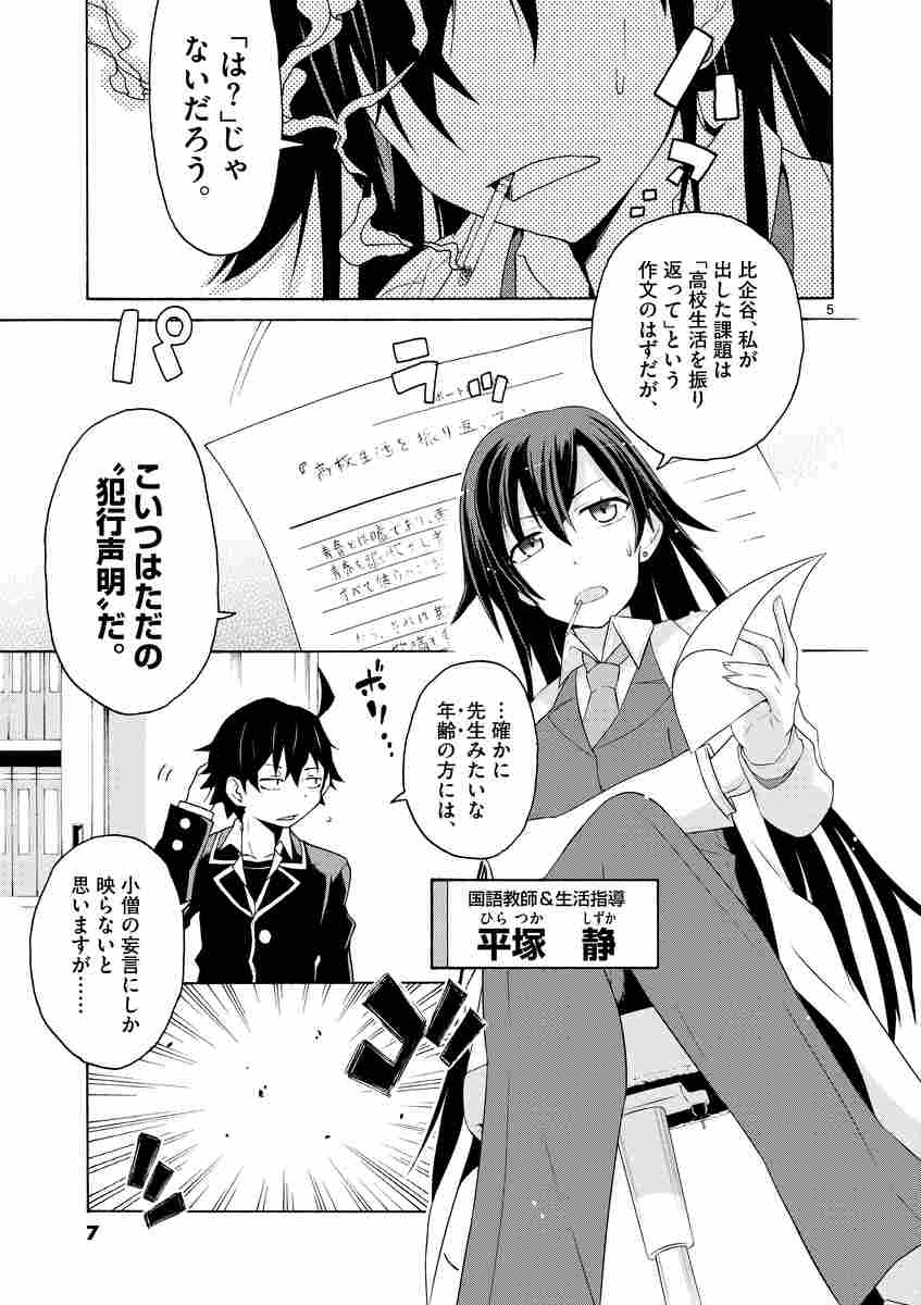 そんな俺を、独身女教師・平塚静先生が拉致して押し込んだ先が「奉仕部」…って、あの、一体何するところなんですか?