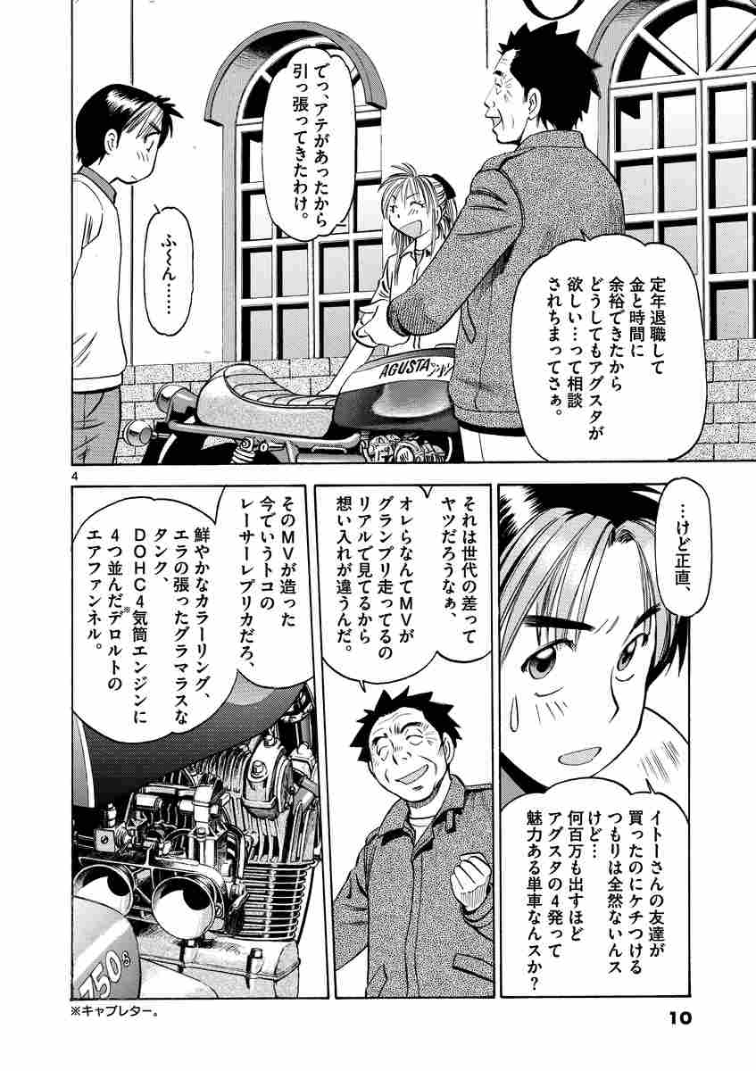 ミヤギの一大決心にゴブリンが揺れる!? バイク便ライダーのミヤギは、イタリア旧車メインのバイク店「ゴブリン」を経営するレナとは、気の合うバイク仲間同士。
