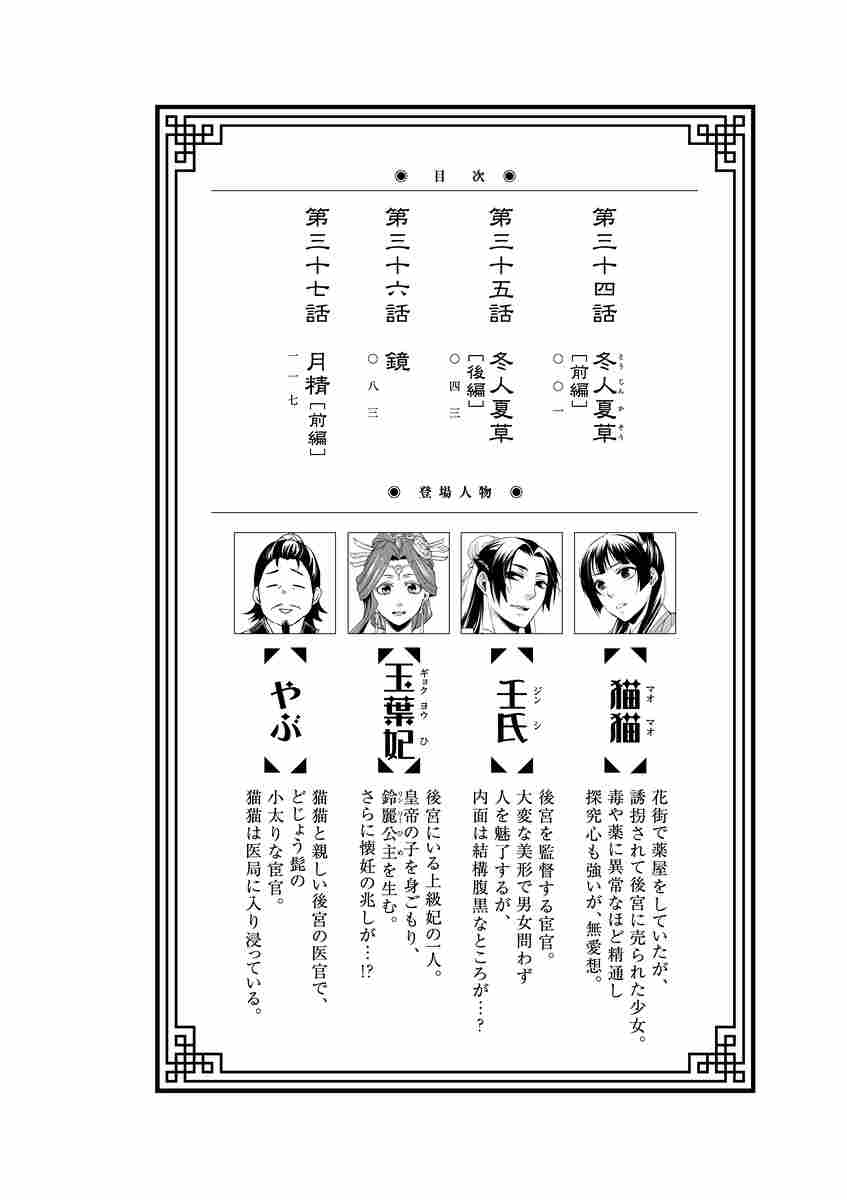 名探偵・猫猫の推理が冴える最新刊! 後宮に生えている毒性のある茸を探せ! 壬氏(ジンシ)からの指令を不審がりながらも、毒草好きの血が騒ぎ後宮中を駆け回る猫猫(マオマオ)。そこへ中級妃の葬儀の知らせが舞い込み、猫猫は侍女頭のお供として葬儀へ参列することに。すると、斎場に突如現れた包帯まみれの謎の女──妃の亡骸に罵詈雑言を浴びせ、暴れ回る…!! 斎場が騒然とする中、猫猫は何か閃いたようで…!?