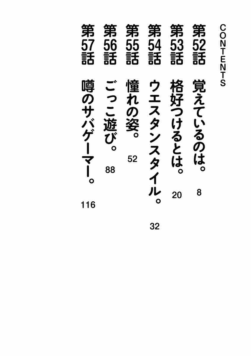 サバイバルゲームの楽しみ方をあらゆる方向から追求する「サバゲっぱなし」。今回は、前巻の24時間耐久ゲームから、また打って変わって西部劇ごっこがテーマです。第52話-第57話までの計6話と、例のごとく描き下ろしおまけページもたっぷりの収録です。