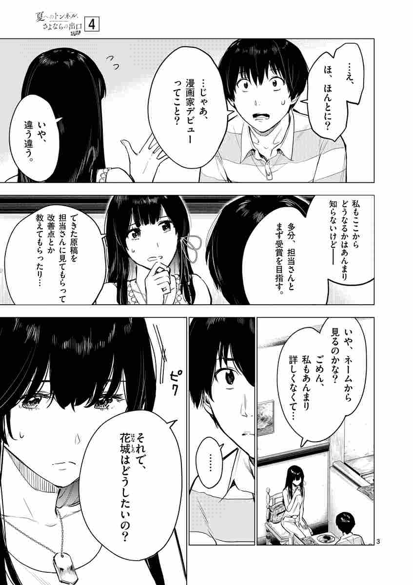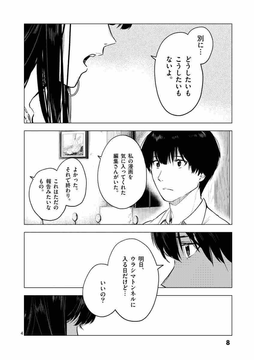 カオルは花城に漫画の担当がついたことを知らされる。“漫画家”という小さい頃からの夢を叶える大きな一歩であるはずなのに、花城は浮かない顔をしていた。カオルはトンネルに入るか入らないか迷っている花城に、トンネル探索の延期を伝える。そしてカオルはある決断をする――
