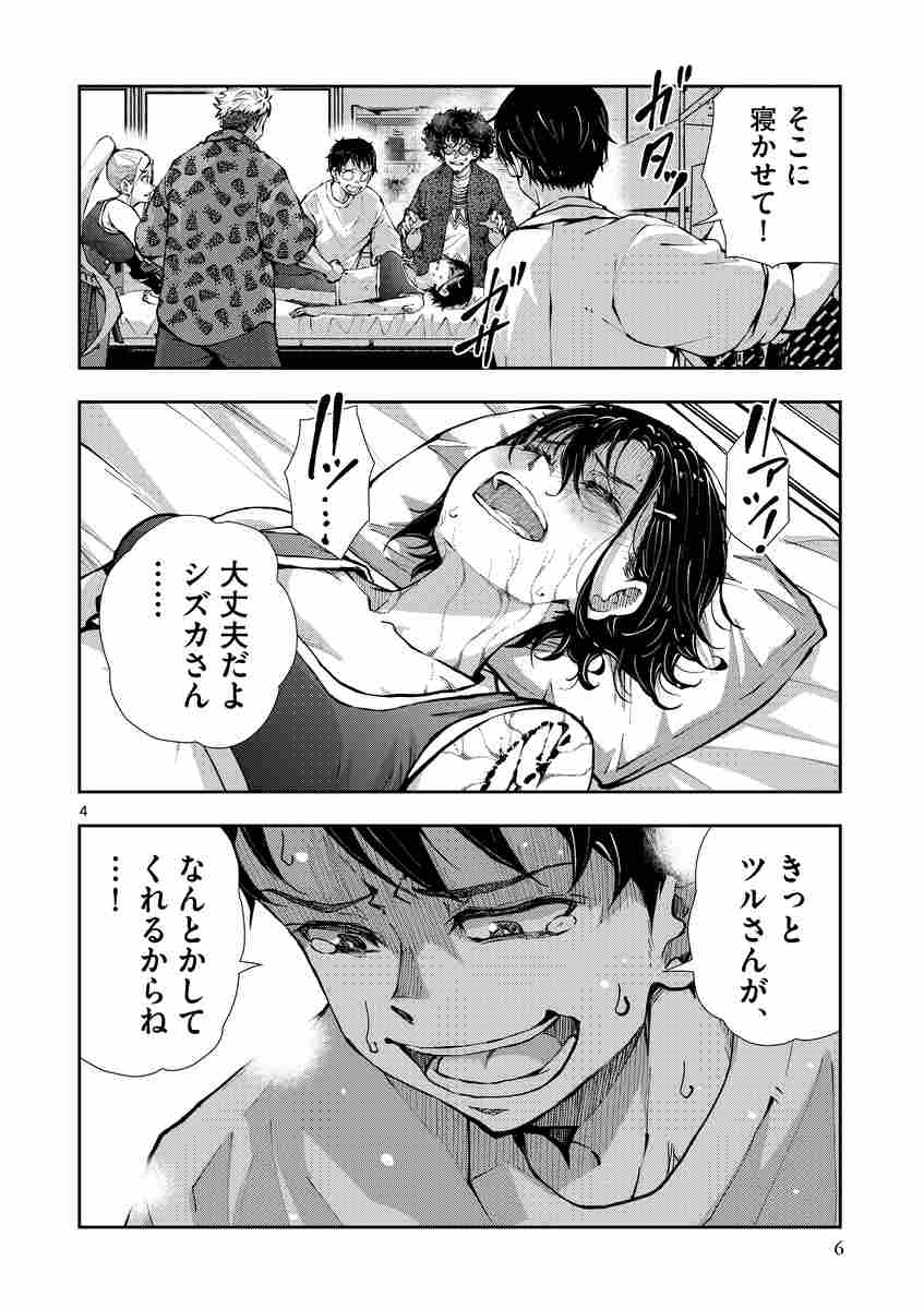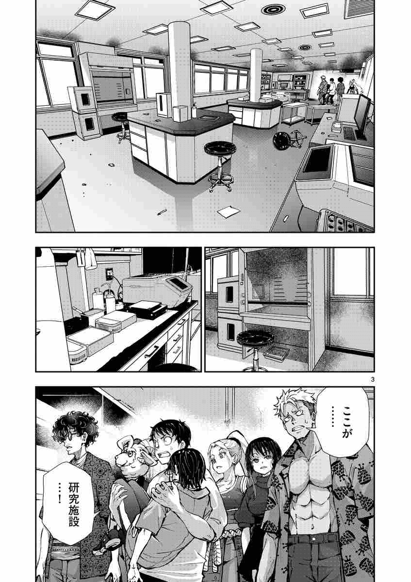 ワクチン研究者・鶴見の言葉を信じて研究施設に運びこむアキラたち。