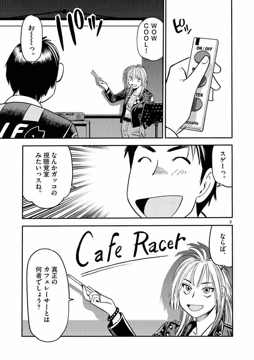 メカニック見習い・ミヤギ、飛躍の時!! 姫の店にて、英国人・パトリシアによる本場カフェレーサーカルチャー講座が開幕!