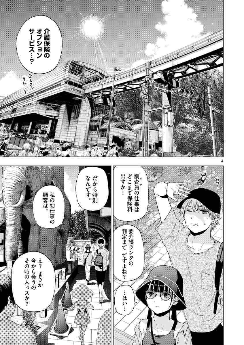介護保険のオプション相談を受ける水森と穂村。