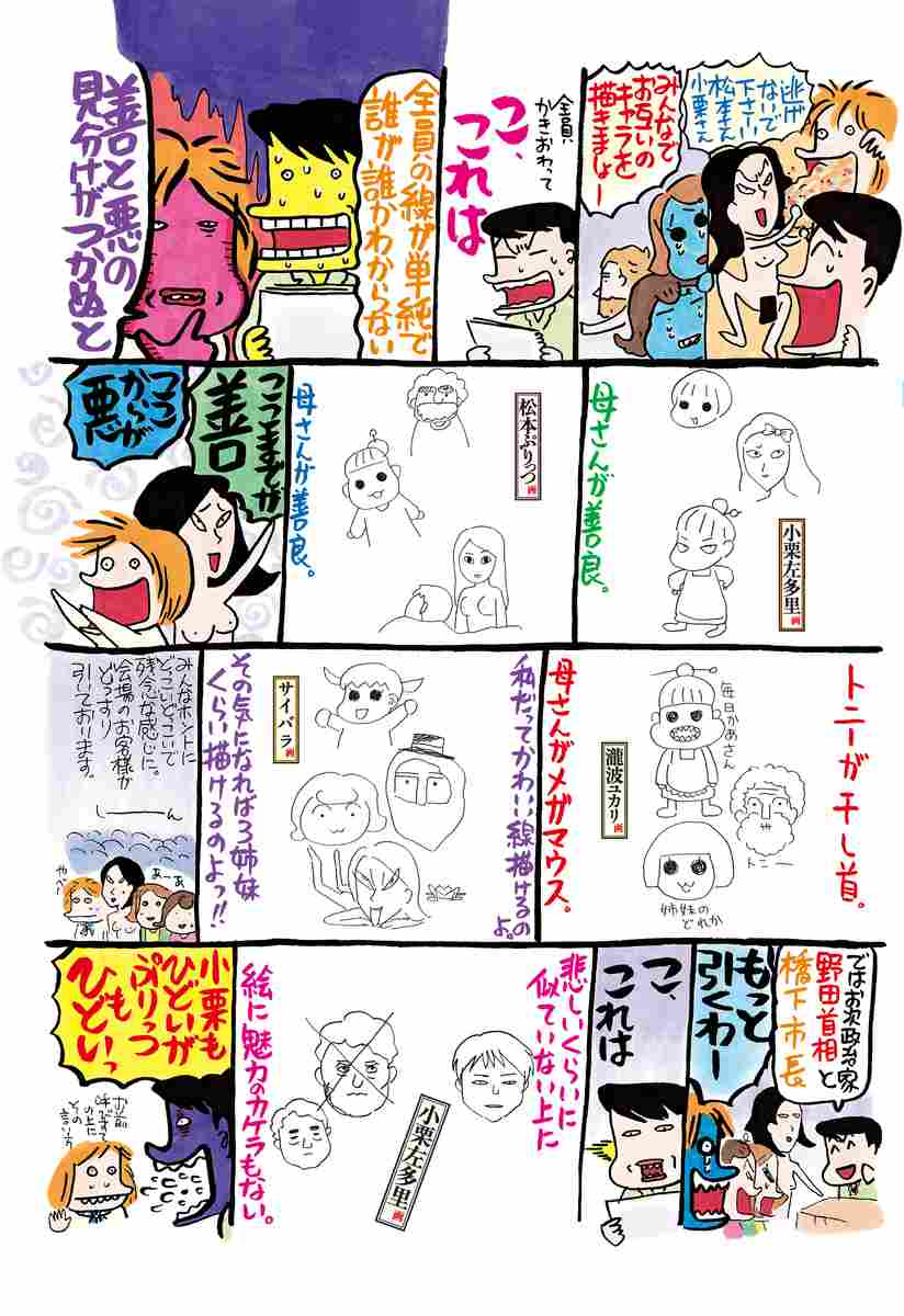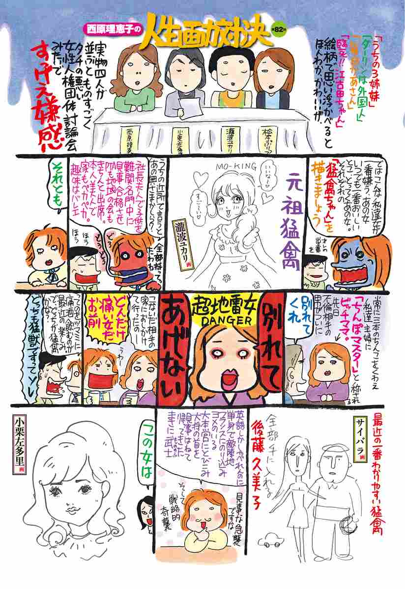 サイバラひがみ節、絶好調です!! 今回も豪華なゲスト陣と画力対決しております。