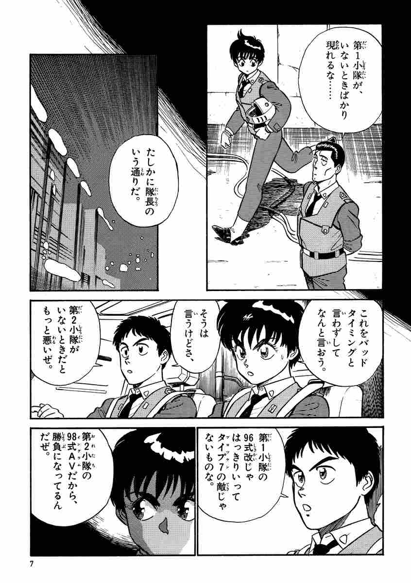 熊耳の特訓で動きが良くなった野明と太田のイングラムは、3機目のブロッケン制圧に成功する。一方、事件の裏で糸を引いていたシャフト社は、蓄積したデータを移植したレイバー・タイプJ9「グリフォン」を開発。米軍と自衛隊の訓練に紛れ込ませて軍事用レイバーを圧倒、その高い性能をアピールする。過日、国際レイバーショウに出展されていた篠原重工の新型レイバーに試乗した遊馬と、制止を図った太田機の前に......黒いレイバーが姿を現す!!