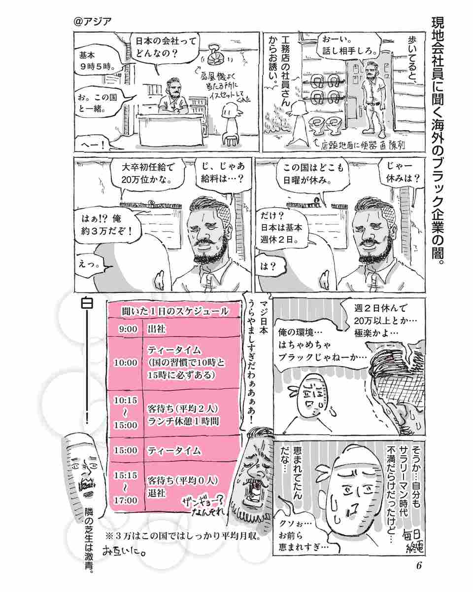 この漫画に登場する様々な国の人々とのやりとりを見て、