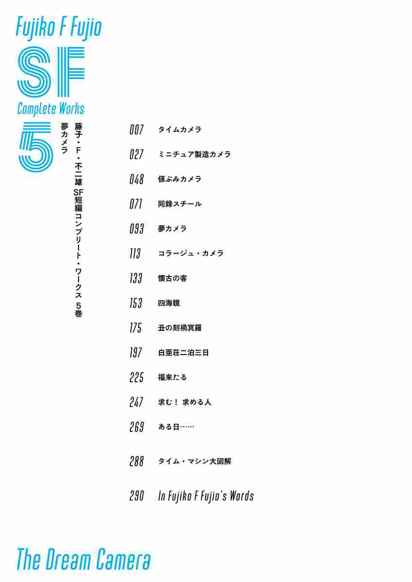 7. 巻末には、藤子・F・不二雄の「SF短編」にまつわるエッセイを収録。単行本初収録となる「ぼくとカメラ」(1979年「小学生カメラ日記」掲載)など、ファン垂涎の内容も。
