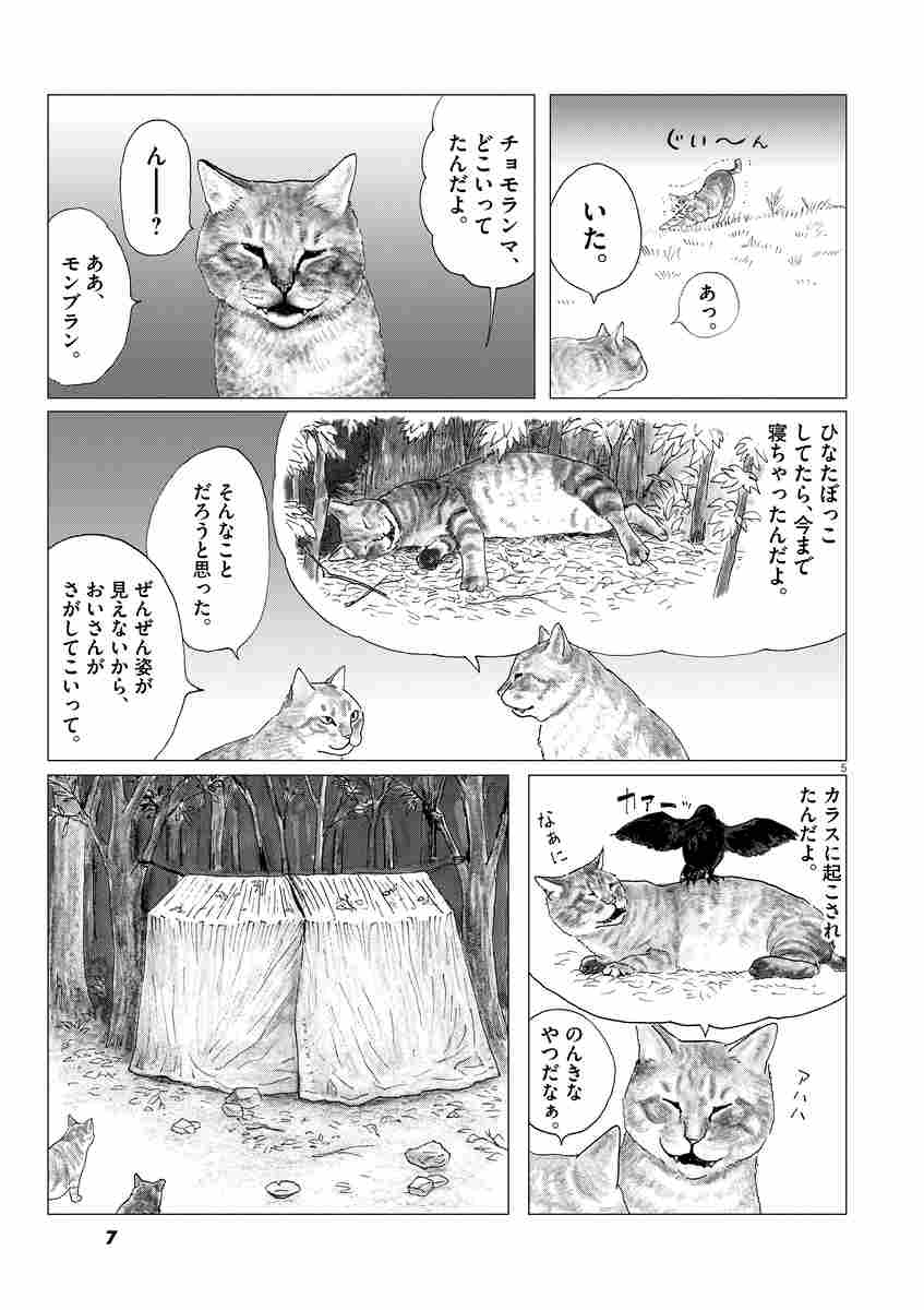 「俺、つしま」の作者! 最新“猫”漫画! 派遣社員の左ミキは、DV気味の彼氏と冴えない毎日を送っていた。そんなある日、河原で人間の言葉を話す不思議な猫・モンちゃんことモンブランに突然話しかけられて! その時から・・・モンちゃんの仲間(兄弟?)でとにかく人なつっこいチョモランマ、不思議な念力らしい力を使うナゾくん、経歴不詳のホームレス、おいさん・・・ミキの日常は不思議な出会いと、予測不能の冒険であふれていく・・・!!?