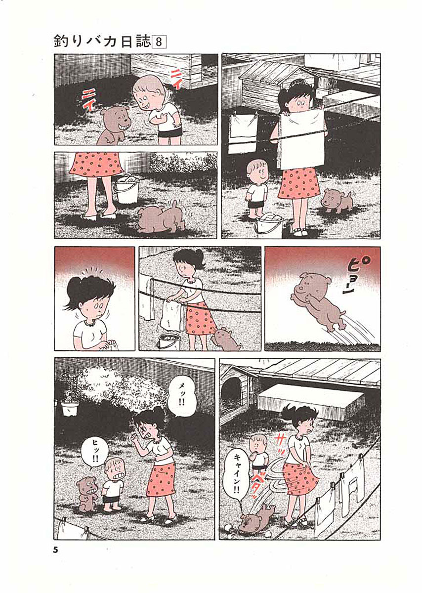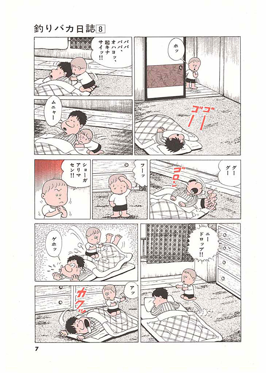 ご存じ“釣りバカ”ハマちゃんとスーさんが繰り広げる珍騒動!! ▼第1話/ラストチャンス▼第2話/ビッグファイト▼第3話/二転三転大誤算▼第4話/下馬評◎の男▼第5話/佐々木課長の肩たたき▼第6話/みち子さんの選択▼第7話/X社員氏の存在▼第8話/ルンルン気分で単身赴任▼第9話/緊急重要会議って!?▼第10話/番外編・桜田門外のねったぼ ●登場人物/浜崎伝助(釣りバカで万年ヒラのペケ社員)、浜崎みち子(伝助には過ぎた明るく賢い奥さん)、浜崎鯉太郎(伝助とみち子の可愛いひとり息子)、佐々木和男(鈴木建設営業三課課長)、鈴木一之助(鈴木建設社長) ●あらすじ/最近、浜崎家ではどうもみち子さんの機嫌が悪い。それもそのはず、伝助の釣りバカぶりが近頃許しがたい状況になっているようで、みち子さんが妊娠したかもしれない……というのにクロダイ釣りにのめり込んでいるというありさま。きっかけは何キロ級というクロダイの大物を目の前にして釣り損ねた伝助が、そばにいた見知らぬ釣りバカ爺さんに「ドヘボッ」と殴られたことから始まった。意地になった伝助はなにがなんでも大物を釣り上げようと躍起になるが……(第1話)。 ●本巻の特徴/この第8巻では、伝助に四国支社への単身赴任の話が持ち上がる。誰もが敬遠するこの単身赴任の話、さすがの佐々木さんもなかなか伝助に言いづらかったのだが、そこは釣りバカの釣りバカたるゆえん。四国の海でひとりゆっくりと釣りが楽しめると思う伝助なのであった(第7話)。 ●その他の登場キャラクター/元クロダイ釣りの名人・源五郎(第1、2話) ●その他のデータ/クロダイ釣り(第2話)、▼裏表紙の伝助釣り講座~マブナ