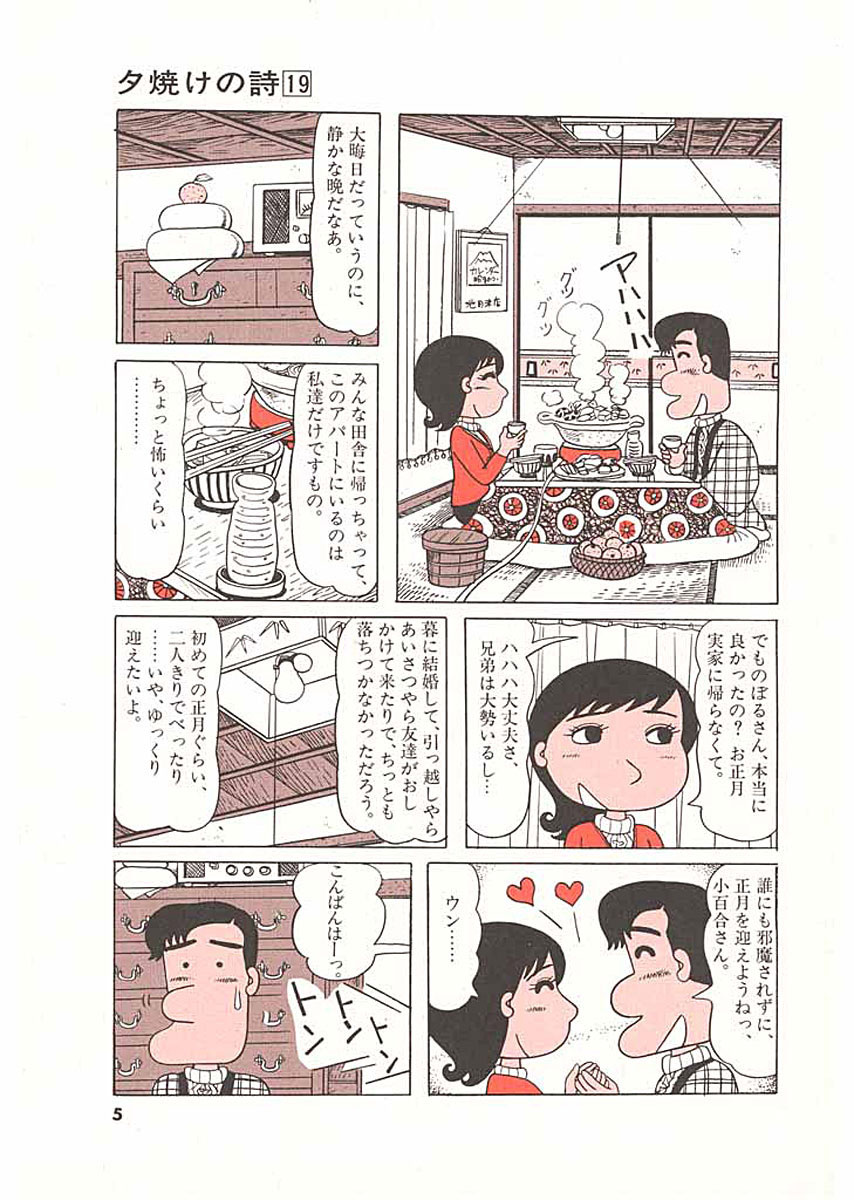 昭和30年代の世界に現代の心のふるさとを追う、珠玉のメルヘン。 ▼第1話/大晦日▼第2話/福寿草▼第3話/僕のツィッギー▼第4話/雪見酒▼第5話/幸せの風景▼第6話/雲雀▼第7話/マイカー時代▼第8話/模型飛行機▼第9話/残雪▼第10話/風車▼第11話/パイナップル▼第12話/雨のトレモロ▼第13話/狼少年 ●登場人物/鈴木則文(鈴木オートの社長。働き者で子供には少々甘い)、鈴木トモエ(優しくてしっかり者のお母さん。時に怒ると恐い)、鈴木一平(鈴木オートの一人息子。ワンパクだが、気は優しい) ●あらすじ/大晦日。のぼると小百合の新婚夫婦は、正月はのんびりとふたりだけで過ごそうと語り合っていた。そこへ、突然のぼるの同僚・立木がやって来た。ちょっとタバコを買いに外にでかけたのぼるだが、思わぬ事が重なりなかなか戻れなくなる。次第に小百合と立木をふたりきりにしたことが気になり始め…(第1話)。▼鳥好きのおじいさんと孫の進一は、冬の間庭にくる野鳥にエサをあげ楽しんでいた。しかし、フン害や鳴き声がうるさいことなどで、進一の母はふたりの趣味を快く思っていない。月日は流れ、寝たきりになってしまったおじいさんに代わって鳥の面倒をみていたのはなんと進一の母であった…(第2話)。▼高校生の優子はガリガリで、いつも男の子たちにからかわれていた。そんなある日、モデルのツィッギーが来日し、日本中にブームを巻き起こす。以来、痩せていることが美しさの基準となり、優子の人気が急に上がっていく…(第3話) ●その他のDATA/昭和30年代風物誌~ツィッギー(第3話)、学園戦争(第6話)、マイカー、スバル360、ブルーバード、フライングフェザー、マツダ360クーペ(第7話)、Uコン(第8話)