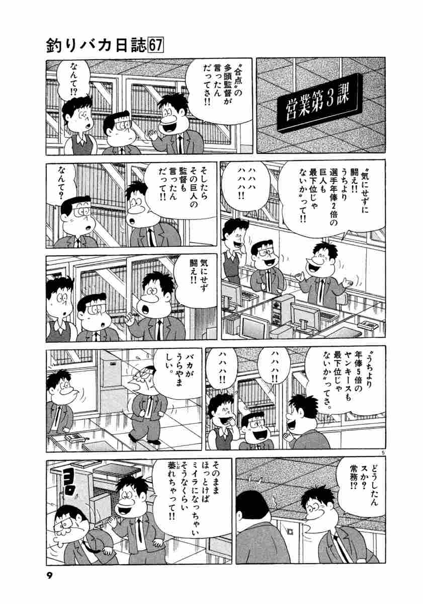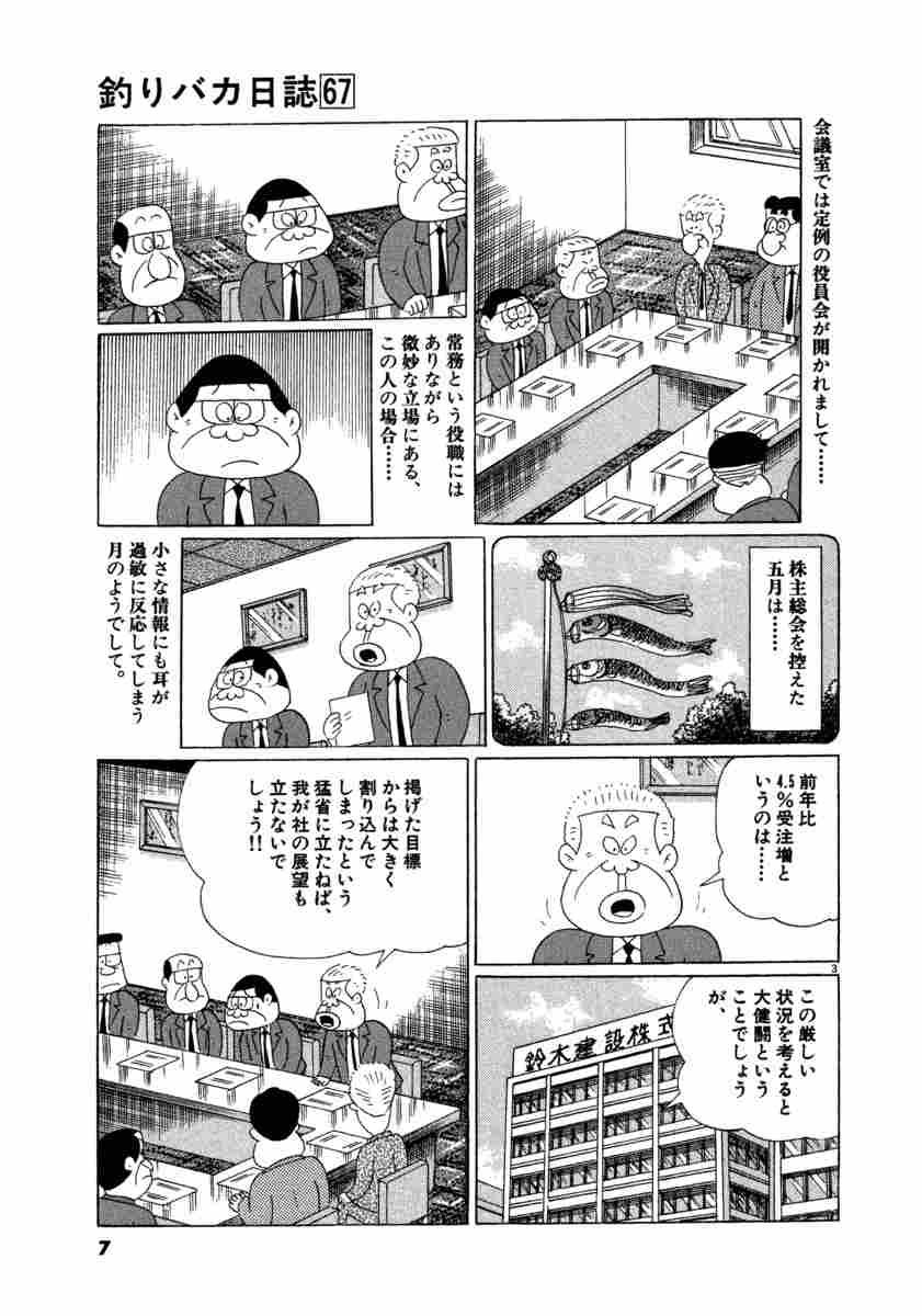 ●主な登場人物/浜崎伝助(通称・ハマちゃん。鈴木建設の万年ヒラ社員で大の釣りバカ。社長代行の秘書から、古巣の営業三課に)、鈴木一之助(通称・スーさん。鈴木建設の社長。伝助の影響で釣りバカに)、佐々木和男(かつて伝助がいた営業三課の元・課長。社長代行から常務取締役に)