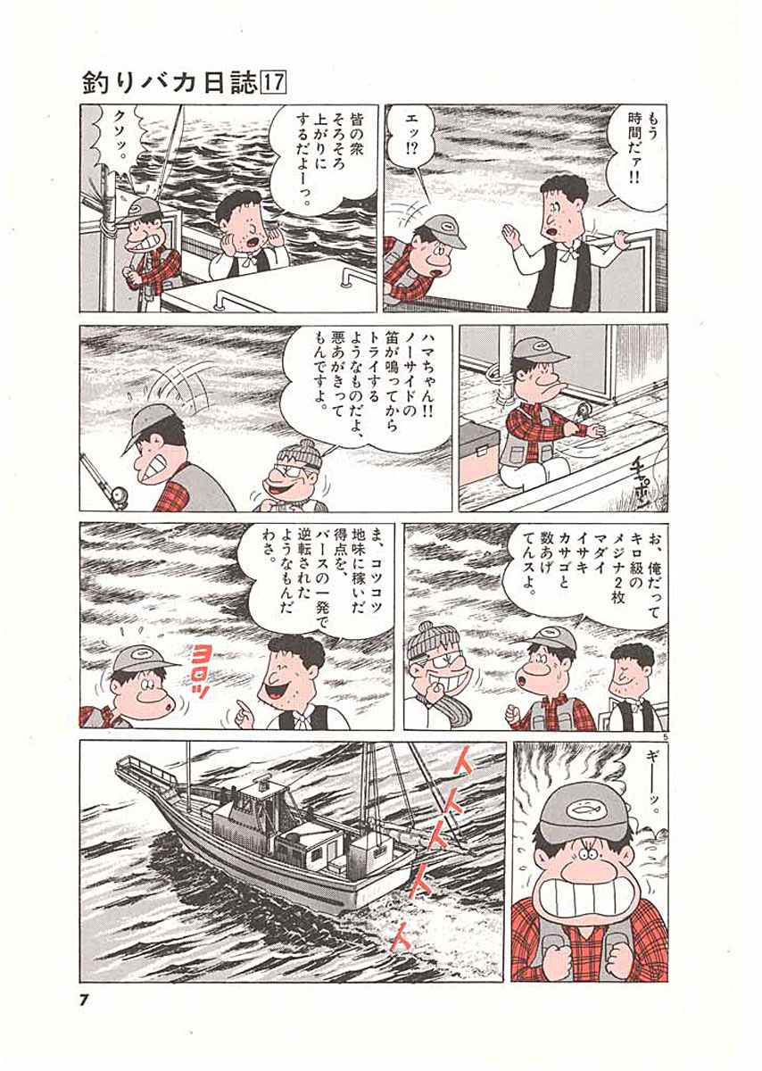 ご存じ“釣りバカ”ハマちゃんとスーさんが繰り広げる珍騒動!! ▼第1話/泣き一回の延長戦▼第2話/ノーサイドの笛が聞こえなかったか!?▼第3話/公私のケジメもなんのその▼第4話/戦いすんで出社して▼第5話/噂▼第6話/大丈夫? マイカンパニー▼第7話/船上の4人▼第8話/春一番の…?▼第9話/人事戦線異状…アリ!?▼第10話/咲イタ咲イタ桜ガサイタ ●登場人物/浜崎伝助(釣りバカで万年ヒラのペケ社員)、鈴木一之助(鈴木建設社長)、佐々木和男(鈴木建設営業部長代理、浜崎みち子(伝助には過ぎた明るく賢い奥さん)、浜崎鯉太郎(伝助とみち子の可愛いひとり息子) ●あらすじ/過去に釣りで仕事をしくじり長い間釣りを断っていた朝本課長は、自分に負けたら釣りをやめるという約束を伝助にさせて勝負に挑む。ところが、その勝負がきっかけで朝本課長の釣りバカが復活! 2人は仕事も忘れて釣り勝負に没頭してしまい……?(第2話)。 ●本巻の特徴/この第17巻では営業三課の人事異動が激しいことこの上ない。新課長の朝本は、釣りバカぶりが復活して自らヒラに降格。課長は部長代理の佐々木さんが兼任することになる。さらにまた、今度は海外事業部部長のポストに佐々木さんが就任か? の話もでてきて……(第9話)。 ●その他の登場キャラクター/営業三課課長・朝本一郎(第1~10話) ●その他のデータ/五目釣り(第1~3話)、▼裏表紙の伝助釣り講座~メバル