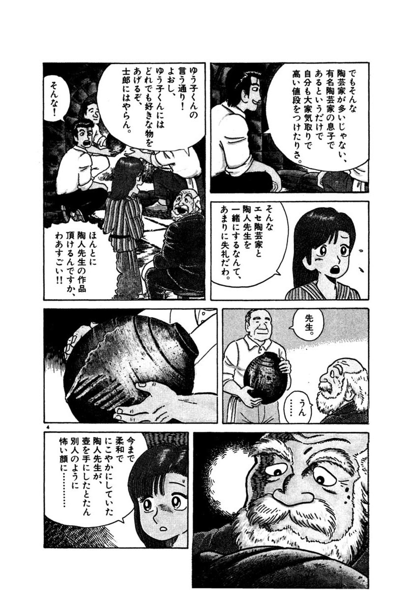 「食」ブームを巻き起こし、アニメ、映画化された大人気コミック! ▼第1話/大地の赤(トマト)▼第2話/氷菓と恋(アイスクリーム)▼第3話/茶人といちご(イチゴ)▼第4話/手先の美(にぎり寿司)▼第5話/大豆とにがり(豆腐)▼第6話/天然の魚(鯛)▼第7話/黄身と白身(目玉焼き)▼第8話/ボクサーの苦しみ・前編、後編(野菜のフルコース) ●登場人物/山岡士郎(東西新聞文化部員・膨大な食の知識を持つ。東西新聞の壮大な企画「究極のメニュー」の作成を担当)。栗田ゆう子(東西新聞文化部員・山岡とともに「究極のメニュー」を担当する)。海原雄山(名だたる陶芸家にして、食の探究者。「美食倶楽部」主宰。山岡の実父) ●あらすじ/ひょんなことからケガをした唐山陶人を見舞って、海原雄山がトマトを土産に持ってきた。陶人がトマトの赤色を出すうわぐすりの研究に没頭していたためだ。だが、そのトマトを見た山岡は「本当の完熟トマトではない、本当のトマトをお見せしよう」と、陶人と雄山を“緑健農法”のトマト栽培地へ案内する(第1話)。▼アイスクリームショップの経営者・歌子に恋をした中松警部は、客づきの悪さに悩む彼女を助けようと、都内のアイスクリーム屋を食べ歩く。その姿をみかねた山岡が教える「アイスクリーム作りのコツ」とは?(第2話)。 ●本巻の特徴/目玉焼きにこだわる者たちによる「国際目玉焼き会議」の模様を軽妙に描いた第7話が秀逸。この後から定番となる「食に対する“身近な”こだわり」シリーズは、ここから始まった。 ●その他の登場キャラクター/唐山陶人(第1話)、中松警部(第2話)、ニューギンザデパート会長・板山秀司(第3話)、カメラマン・荒川精作(第4、8、9話)、ヘンリー・ジェームス・ブラック(快楽亭ブラック)(第5、7話)、 ●その他DATA/表紙写真~フェトチーネアルポモド(トマトソースのパスタ)とトマトサラダ〔調理/ラ・コロンバ〕