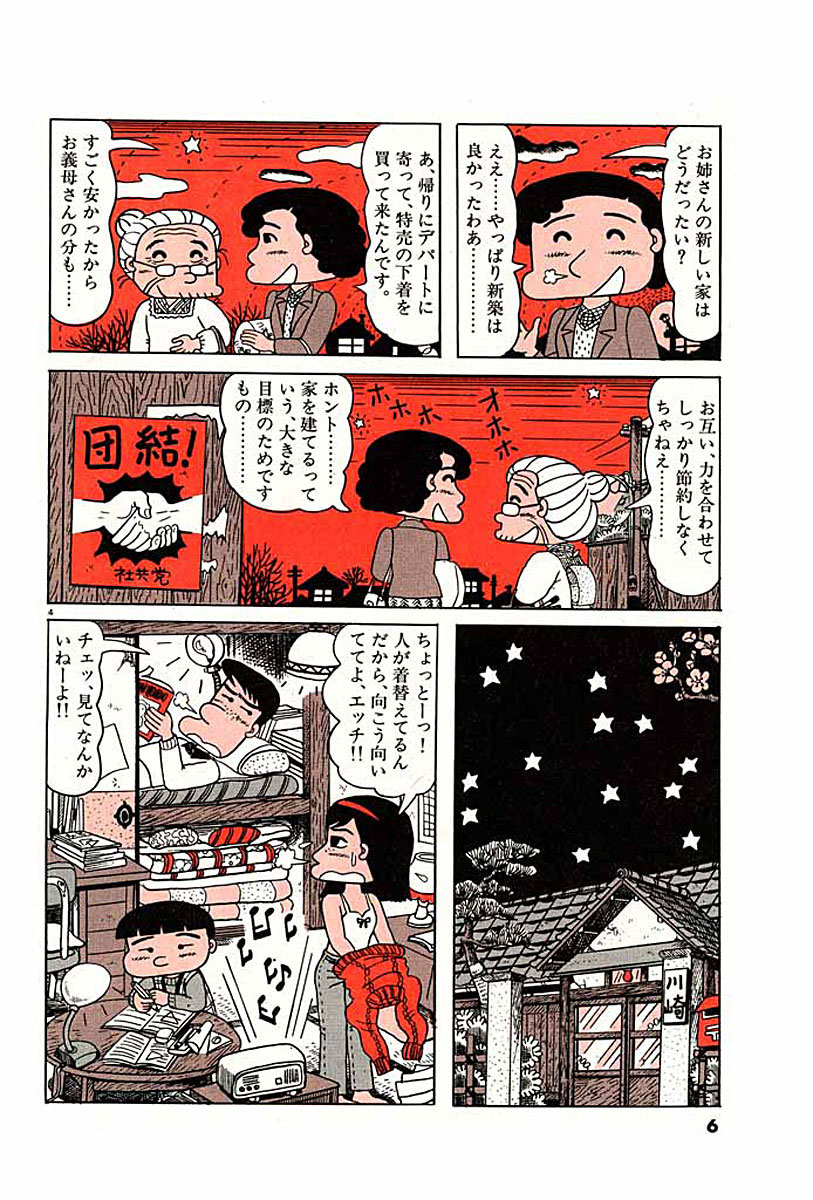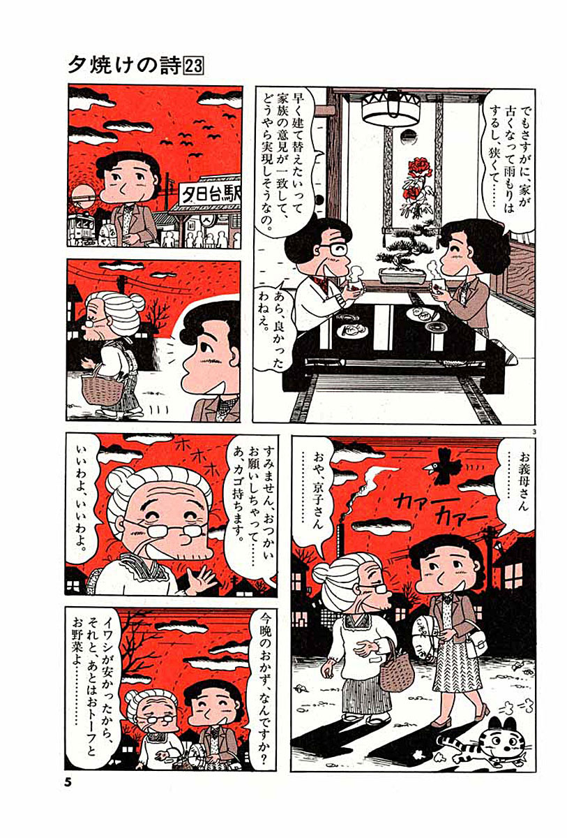 昭和30年代の世界に現代の心のふるさとを追う、珠玉のメルヘン。 ▼第1話/家を建てるなら▼第2話/春の雪▼第3話/風の中▼第4話/趣味の世界▼第5話/ピクニック▼第6話/鯉のぼり▼第7話/三丁目の夕ごはん▼第8話/走馬燈▼第9話/夏座敷▼第10話/浮草▼第11話/優曇華(うどんげ)の花▼第12話/蝉しぐれ▼第13話/結婚記念日▼第14話/道草 ●登場人物/鈴木則文(鈴木オートの社長。働き者で子供には少々甘い)、鈴木トモエ(優しくてしっかり者のお母さん。時に怒ると恐い)、鈴木一平(鈴木オートの一人息子。ワンパクだが、気は優しい) ●あらすじ/古くなり、手狭になった家を立て替えることになった川崎さん一家。ところが、家族それぞれが自分の希望を言うため、大工の三沢さんは大弱り。そんな折、奥さんの姉夫婦が無理して新築した家が原因で離婚する。これを知った川崎さんは、大工の三沢さんの人柄を信じて全てを任せることにする(第1話)。▼鏡荘に越してきた昌子と進一。二人は将来結婚することを約束したカップルだった。ある日、昌子は自分達の部屋に見知らぬ女性が居るのを外から見た。進一が浮気していると思った昌子は、急いで部屋に行くが、結局それは幻だった。しばらくして、隣人一家のご主人が事故で急死し、越していく。今度は誰も住んでいないはずの部屋の窓に、引っ越していった隣人一家の姿が見える…(第2話)。▼婿養子のナチュラル電気店の主は、奥さんと姑に頭が上がらない。そんなこともあり、テレビの修理で行った家の主人の関白ぶりをうらやましいと思う。ある日、その主人と飲み屋でバッタリ出会って話しているうちに、なんとその主人も自分と同じ婿養子だと分かる(第3話)。 ●その他のDATA/昭和30年代風物誌~ガス湯沸かし器(第1話)、歌声喫茶(第2話)、電気掃除機(第3話)、HOゲージ(第4話)、メルクリン社鉄道模型(第4話)、てるてる坊主(第5話)、乗り物酔い防止法(第5話)、平均的な30年代の朝食(第7話)、朝食のおかず(第7話)、安あがりの夕食の例(第7話)、トースター(第7話)、走馬燈(第8話)、30年代の朝食(第7話)パンをふかしたお菓子(第7話)、すだれ(第9話)、迎え火(第9話)、夏座敷(第9話)、かや(第9話)、優曇華(うどんげ)(第11話)、わらぶき屋根の家(第12話)