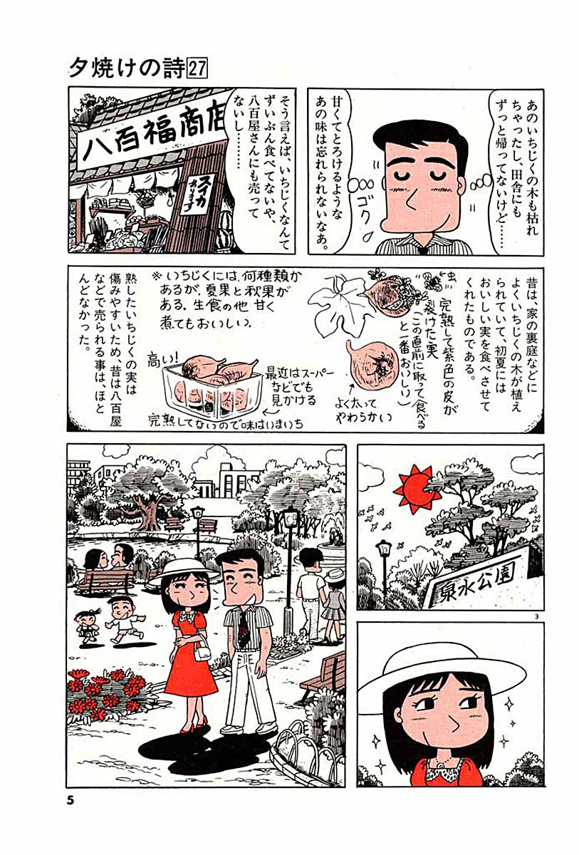 昭和30年代の世界に現代の心のふるさとを追う、珠玉のメルヘン。 ▼第1話/無花果の実▼第2話/夏の扉▼第3話/愛犬物語▼第4話/アキラおじさん▼第5話/星に願いを▼第6話/いじめっ子▼第7話/案山子▼第8話/迷信▼第9話/読書週間▼第10話/紅葉狩り▼第11話/毛糸だま▼第12話/鉱石ラジオ▼第13話/新年会▼第14話/てぶくろ ●登場人物/鈴木則文(鈴木オートの社長。働き者で子供には少々甘い)、鈴木トモエ(優しくてしっかり者のお母さん。時に怒ると恐い)、鈴木一平(鈴木オートの一人息子。ワンパクだが、気は優しい) ●あらすじ/年男は、恋人・真理の家に初めて行ったとき、好物のいちじくを出され大喜び。そんな彼に好感を持った真理の家の家族も温かく迎えてくれた。ふたりは幸せいっぱいだったが、結婚式も間近になったある日。真理はウェディングドレスを見に行った帰りに事故にあい死んでしまう…(第1話)。▼一平たちの家庭科の桜井先生は、15年前に戦争で夫を亡くした戦争未亡人。今でも死んだ夫とのわずか半年間の結婚生活の思い出を胸に、再婚もせずに暮らしていた。そんなある日、戦死したはずの夫が、ジャングルで現地の女性と暮らしていたのが発見され…(第2話)。▼森田家で飼っていたジローは、近所でも評判の賢い犬だった。そのジローが病気で死んでしまう。そこへ、ジローにそっくりな小犬が現れる。しかし、その犬は名犬ジローとは似ても似つかぬ駄犬で、次第にドジローと呼ばれるようになるが…(第3話)。 ●その他のDATA/昭和30年代風物誌~いちじく(第1話)、陰膳(第2話)、量売(第5話)、田畑(第7話)、案山子(第7話)、迷信(第7話)、下駄(第7話)、いろり(第7話)、家の方角などの迷信(第8話)、レンタカー(第10話)、道路(第10話)、結婚(第11話)、鉱石ラジオ(第12話)、キューピー(第12話)、軍人将棋(第12話)、くみとり式トイレ(第13話)、手ぶくろの指人形(第14話)、おサルの電車(上野動物園)(第14話)