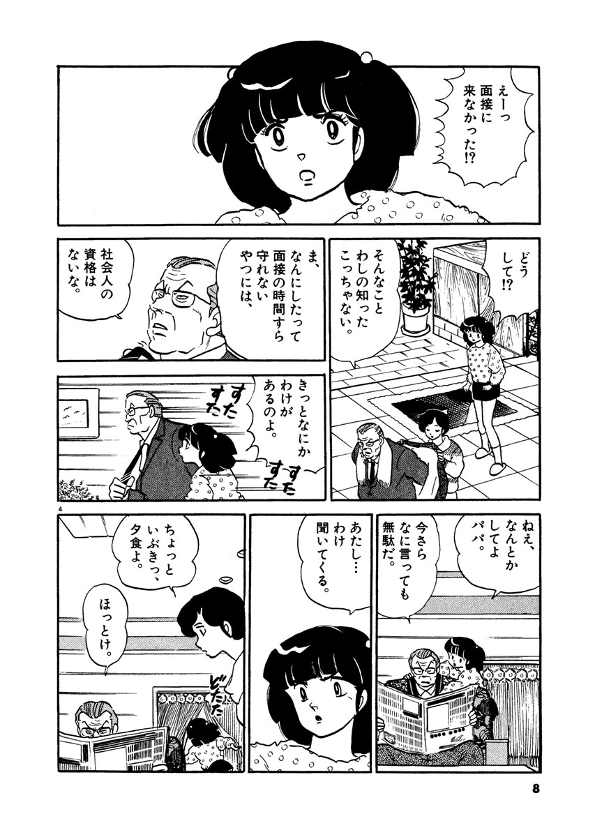 ●あらすじ/大本命・三友商事の面接をドタキャンしてしまった五代。人事部長である父親からそのことを聞いた八神は、わけがあるはずだと五代のもとへ急行する。駆けつけた一刻館では、五代の部屋の前で住人たちが騒ぐ中、本人は閉じこもったまま。さらに、帰りの遅い娘を心配した八神の父親も一刻館へ乗り込んできて…?(第1話)