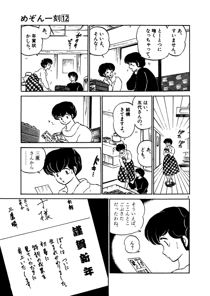 ●あらすじ/元旦。響子のもとに三鷹から年賀状が届いた。特訓の成果を見てもらいたいと書かれており、裏面には犬の写真が…。そして三鷹は、神社へ初詣に来ていた五代と響子の前に現れ、重大な用件があると宣言。すわプロポーズかという空気が流れる中、門前ではつながれていた犬の惣一郎さんがいなくなってしまい…?(第1話)