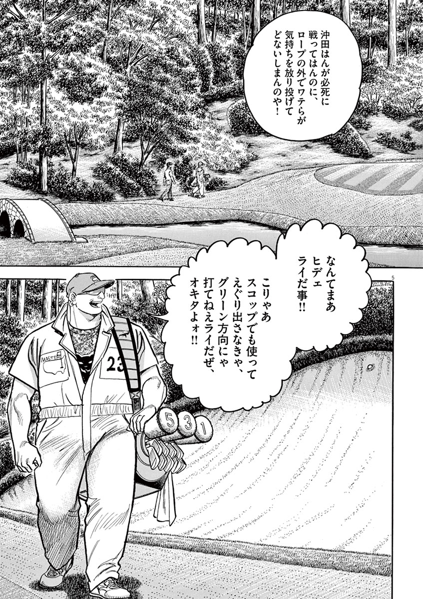 ●あらすじ/最終日の12番ホール。打ち直しの3打目はバンカーへ。反り返った斜面に埋まっているボールを、直接グリーンに乗せることは限りなく不可能に近い。これ以上スコアを落とさないために沖田が採った方法は、ボールを真上に打ち上げ、バンカーの平地へ移動させることで…!?(第1話)