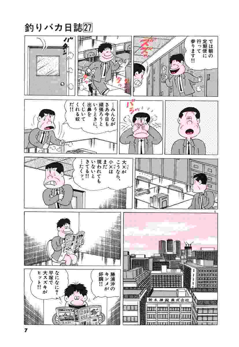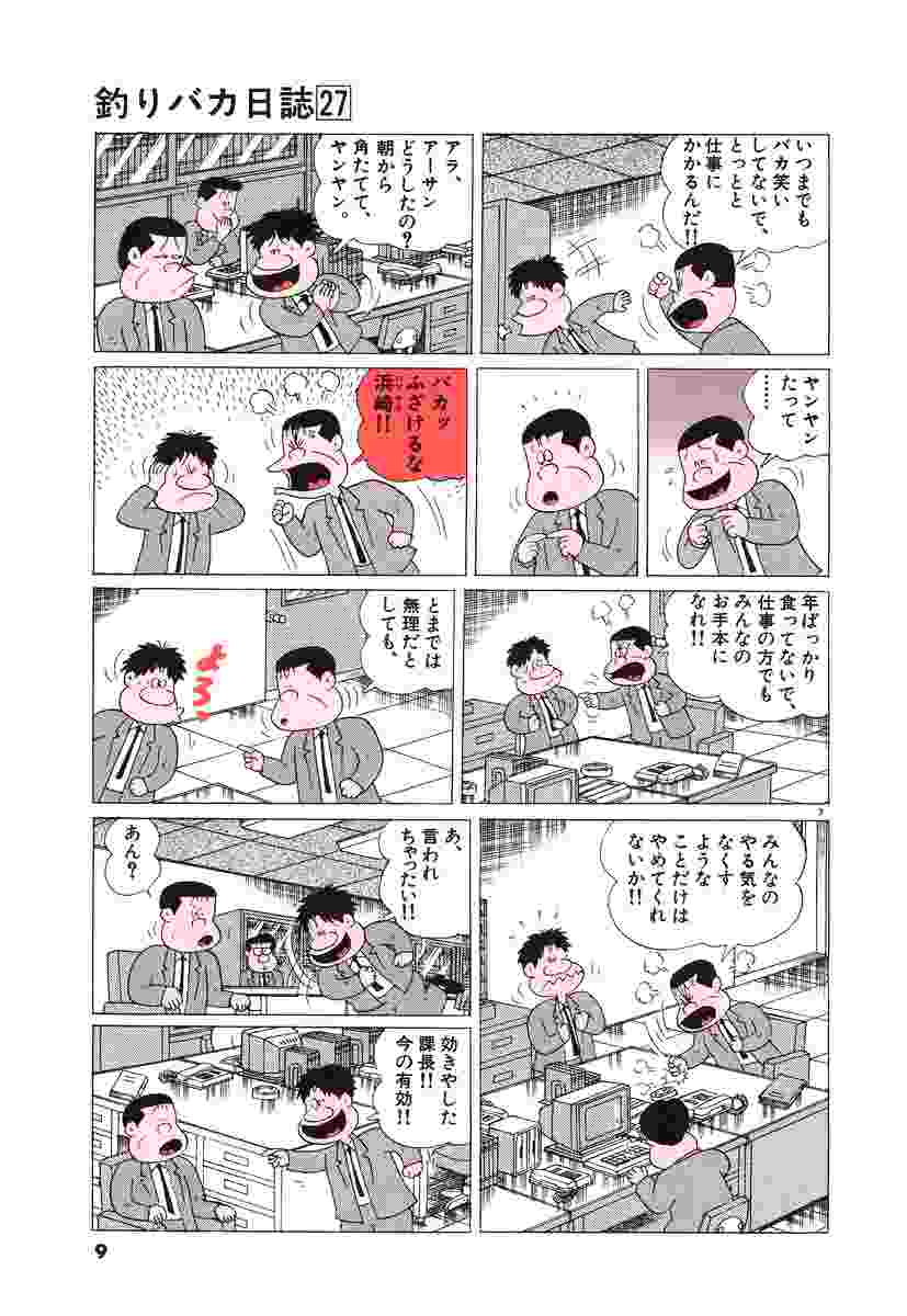ご存じ“釣りバカ”ハマちゃんとスーさんが繰り広げる珍騒動!! ▼第1話/精鋭VS.×(ペケ)コンビ▼第2話/青田課長の看脚下▼第3話/鈴健の春闘▼第4話/妥結、決裂、意外な展開▼第5話/よせばいいのに間に合って▼第6話/桜散ったがニッチモサッチモ▼第7話/とんだぬれぎぬスパイ説▼第8話/釣りあげられるか大物回答▼第9話/バーバーラークの決定的瞬間▼第10話/鈴(スー)さんの決断 ●主な登場人物/浜崎伝助(釣りバカで万年ヒラのペケサラリーマン)、鈴木一之助(鈴木建設社長。伝助の影響で釣りバカに)、浜崎みち子(伝助氏には過ぎた明るく賢い奥さん)、浜崎鯉太郎(伝助、みち子の可愛いひとり息子)、佐々木和男(鈴木建設 営業担当取締役) ●あらすじ/九州支社から本社営業第一課に配属となった江夏は、伝助以上の大物ぶり。前日の歓迎会で酔っぱらった勢いとはいえ課長にかみついたのに、翌日も堂々と遅刻してくる始末。もちろん青田課長はカンカンだが、電車を乗り過ごしたといって、本人はまったく反省の色がなく…(第1話)。▼江夏と伝助のペケコンビにすっかり手を焼いている青田課長。どうにかして二人を一課から駆逐できないものかと思案する日が続く。ある日そのことを佐々木さんに相談したところ「考えてみます」との答えが! 喜ぶ青田課長だが、なんと二人が断交委員に選ばれたため、簡単に異動させることができなくなってしまい…(第3話)。 ●本巻の特徴/組合の団交委員となった伝助が、春闘を引っかき回す様子が描かれる。 ●その他の登場人物/伝助とペケコンビを組む営業第一課・江夏金造(第1、2、3、4、5、6、7、8、9、10話)、営業第一課課長・青田(第1、2、3、4、5、10話)、鈴建労組委員長・岩永昭男(第3、4、5、6、7、8、9、10話) ●その他のデータ/カレイ釣り(第3話)、カサゴ釣り(第6、7話)▼裏表紙の伝助釣り講座~カサゴ