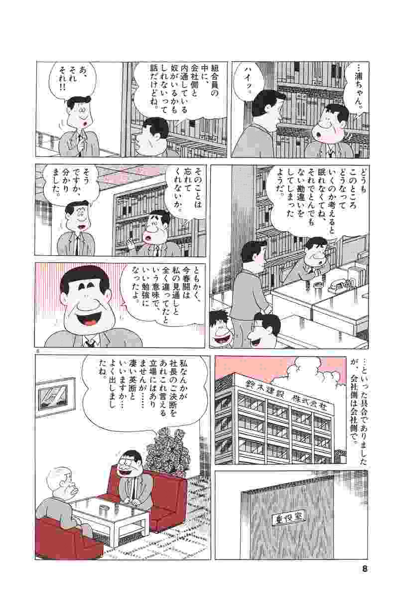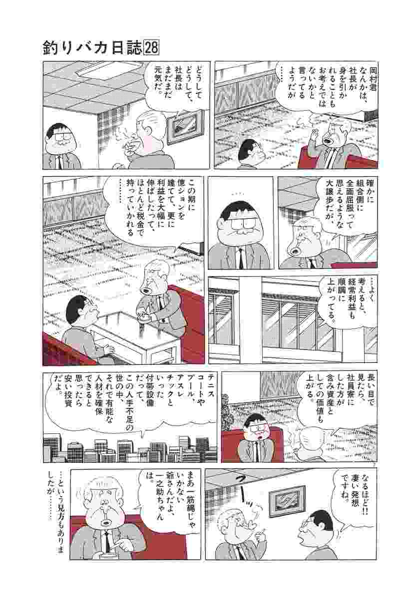 ご存じ“釣りバカ”ハマちゃんとスーさんが繰り広げる珍騒動!! ▼第1話/梅雨明けて晴れやかな空…?▼第2話/重役並のお中元▼第3話/凡ヘッドハンティング▼第4話/入れたい人より出したい人▼第5話/犬と猿のホットライン▼第6話/川原で・ごめんなさい・▼第7話/鈴(すー)・甘(アマ)紛争決着…!?▼第8話/いざお向かいに初出勤▼第9話/とんでもコピー▼第10話/懺悔の気持ち ●主な登場人物/浜崎伝助(釣りバカで万年ヒラの×(ペケ)サラリーマン)、鈴木一之助(鈴木建設社長。伝助の影響で釣りバカに)、浜崎みち子(伝助氏には過ぎた明るく賢い奥さん)、浜崎鯉太郎(伝助、みち子の可愛いひとり息子)、佐々木和男(鈴木建設営業担当取締役) ●あらすじ/長引いた春闘のせいで、すっかり仲違いしてしまったハマちゃんとスーさん。しかたなく一人で鮎釣りに出かけたスーさんは、久々の大当たりでホクホク顔…なのだが、ハマちゃんがいないと今ひとつ楽しくない。ハマちゃんを誘わなかったことを後悔しながら川岸を見ると、なんとそこにはハマちゃんが! 驚いたスーさんだが、ハマちゃんと一緒にいる爺さんの顔を見てさらに驚いた!(第1話)。 ●本巻の特徴/偶然にハマちゃんの弟子となった邦栄建設社長の甘粕とスーさんが、ハマちゃん獲得を巡って争う。 ●その他の登場人物/鈴建労組委員長・岩永昭男(第1話)、邦栄建設の社長でハマちゃんの弟子・甘粕賢三郎(第2、3、4、5、6、7、8、9話)、邦栄建設営業第一課課長・佐々山博(第8、9、10話) ●その他のデータ/鮎釣り(第1、2、6、7話)▼裏表紙の伝助釣り講座~フグ