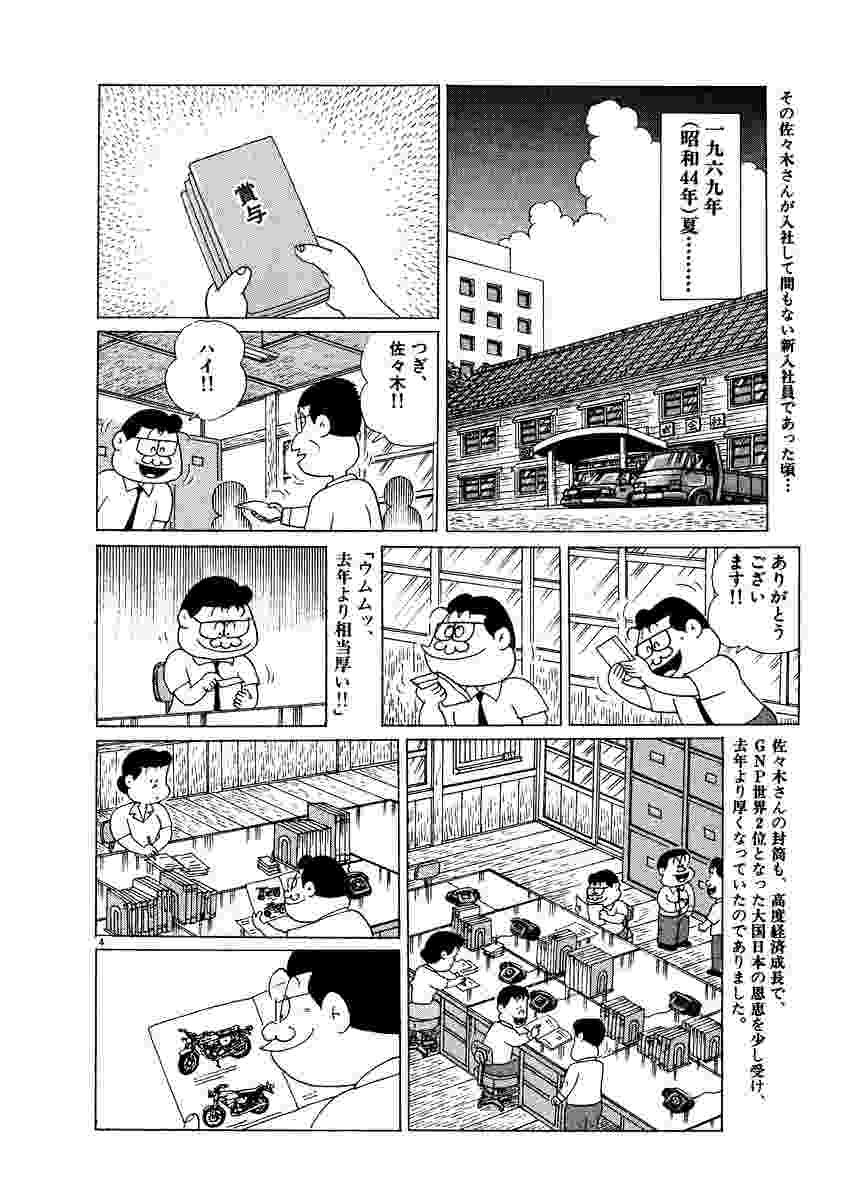 ●登場人物/佐々木和男(鈴木建設取締役兼営業三課長。典型的なニッポンの中間管理職)、佐々木くん(若かりし頃の佐々木さん。昭和40年代、今では比べ物にならないほど小さかった鈴木建設でがんばる若手営業社員)