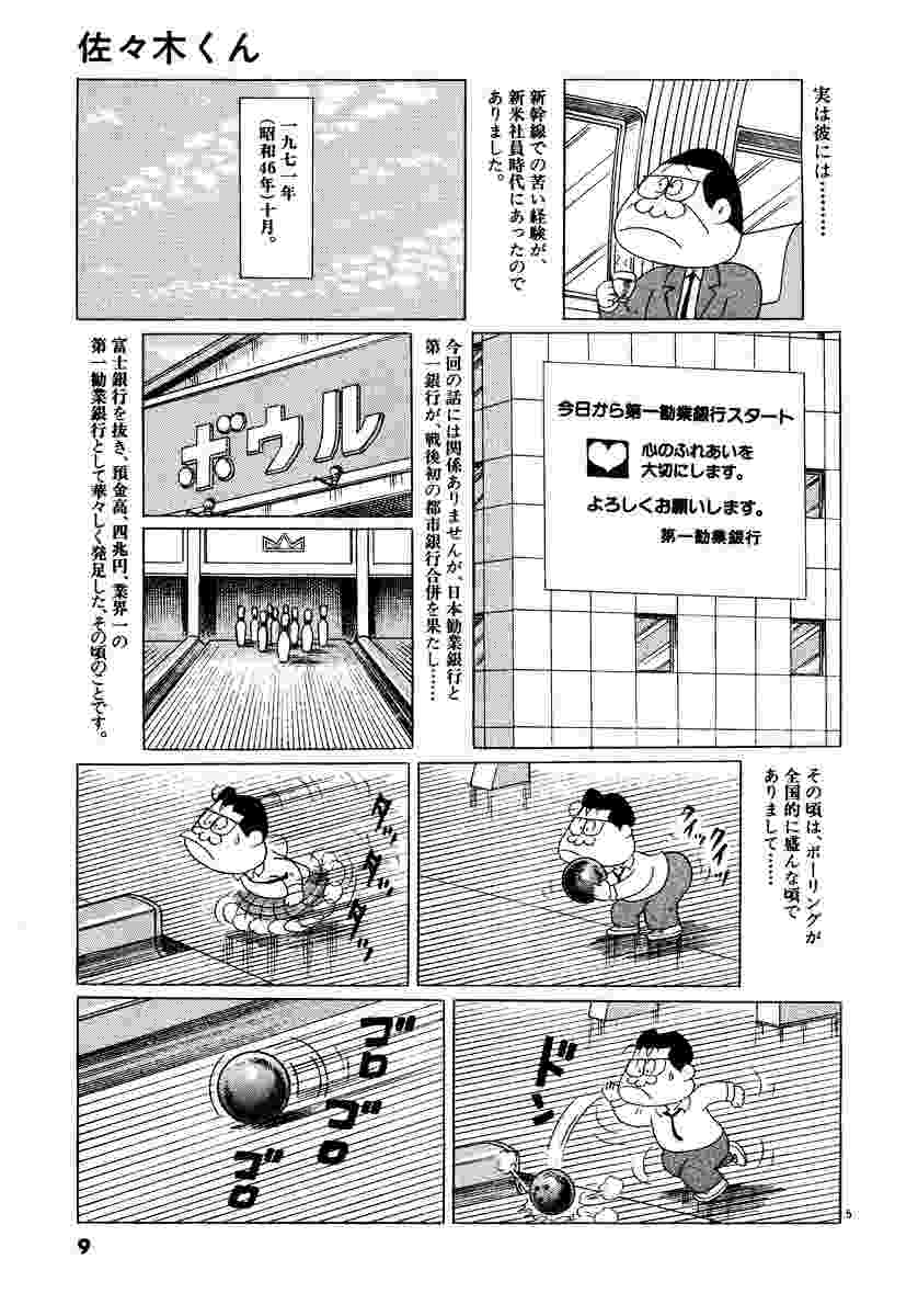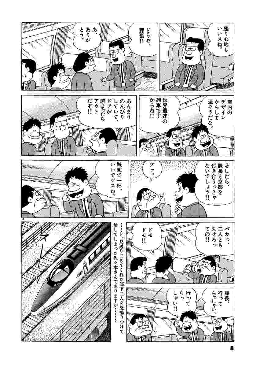 ▼第26話/さようなら新幹線…!?▼第27話/案内状はコピーで…!?▼第28話/鈴建の横井さん…!?▼第29話/情報不足でいいことも…!?▼第30話/逃がした魚は…!?▼第31話/軽井沢へ行こう!▼第32話/(外)重要書類…!?▼第33話/師走の乱▼最終話/これで本編へとリンク!? 【みち子さん】…▼第1話/罪深きはどっち?▼第2話/真昼の夢と現実!?▼第3話/禁断の不倫疑惑!!●登場人物/佐々木和男(鈴木建設取締役兼営業三課長。典型的なニッポンの中間管理職)、佐々木くん(若かりしころの佐々木さん。昭和40年代、今とは比べ物にならないほど小さかった鈴木建設でがんばる若手営業社員)、浜崎みち子(浜崎家の主婦。ハマちゃんには過ぎた、明るく賢い奥さん)●あらすじ/新幹線で京都へ出張することになった佐々木さん。見送りにきたハマちゃんたちをさっさと帰してしまったが、それには、新米社員時代の苦い経験があったのだ。昭和40年代当時、世はボーリングブームの真っただ中。佐々木さんも密かに練習を重ねていたが、社内ボーリング大会の前に、出張する部長を見送ることになって……(「佐々木くん」第26話)。▼息子の鯉太郎にお遣いを頼んだみち子さん。言われた通り買い物をした鯉太郎だが、誘惑に負けてアイスも買ってしまう。「100円でも立派なドロボー」と叱ったみち子さんだったが、さらにお財布の中の1万円が1枚足りないことに気付く。みち子さんの予想通り、犯人はハマちゃん。釣りから帰ったところを問い詰められたハマちゃんは……(「みち子さん」第1話)。●その他の登場人物/浜崎伝助(釣りバカで、万年ヒラの「ペケ」サラリーマン)、鈴木一之助(鈴木建設社長)、浜崎鯉太郎(伝助、みち子の可愛い可愛いひとり息子)