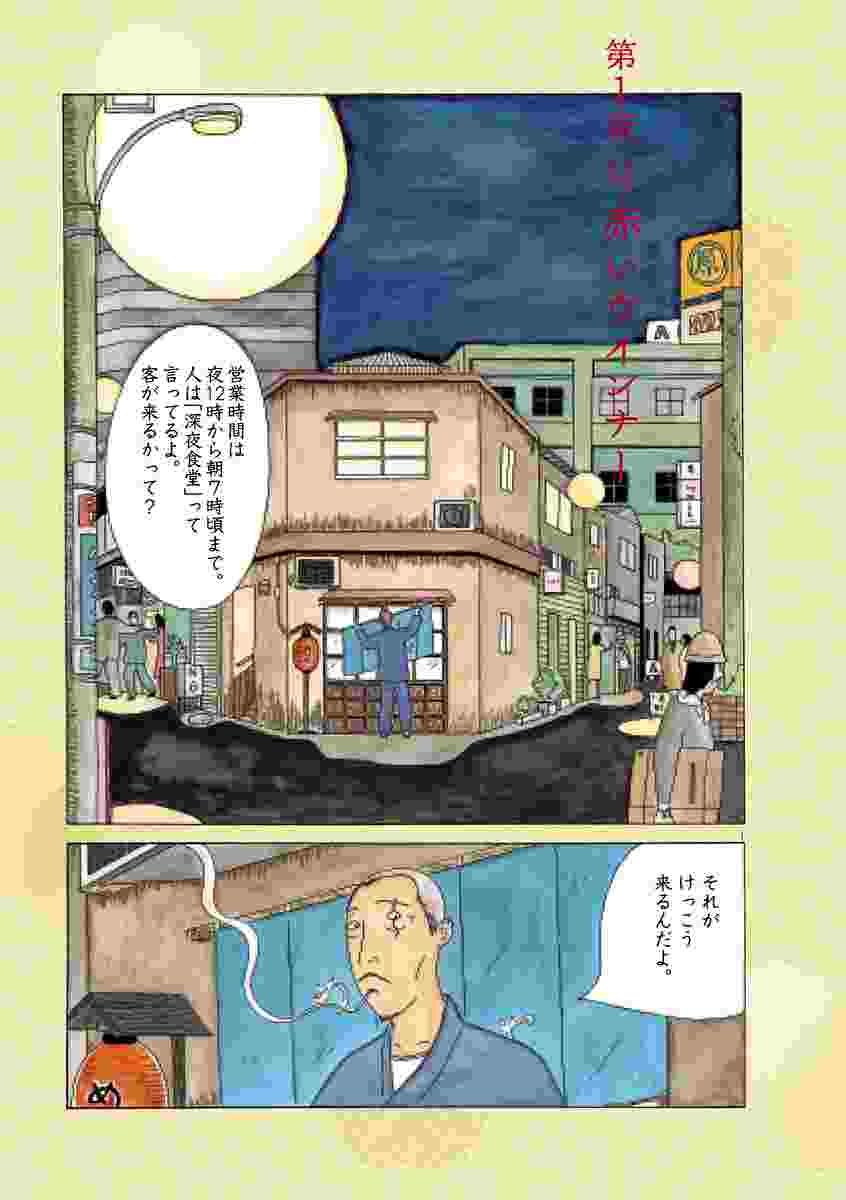▼第1話/赤いウインナー▼第2話/きのうのカレー▼第3話/猫まんま▼第4話/しょうゆとソース▼第5話/牛すじ大根玉子入り▼第6話/納豆▼第7話/焼き海苔▼第8話/たらこ▼第9話/カツ丼▼第10話/ナポリタン▼第11話/ポテトサラダ▼第12話/キューリのぬか漬け▼第13話/スイカ▼第14話/ラーメン▼箸休め/カツカレー●あらすじ/歓楽街の端にある小さな店『深夜食堂』。営業時間が夜の12時から朝の7時頃までだから、みんなが勝手にそう呼んでいる。そこは、メニューはわずか、あとは食べたいものを勝手に注文すれば、作れるものならなんでも作ってくれる変わった店だった…(第1話)。●本巻の特徴/ビッグコミックオリジナル本誌・増刊号で話題沸騰の人気作が待望の単行本化!! どこかなつかしい味をご賞味あれ!!