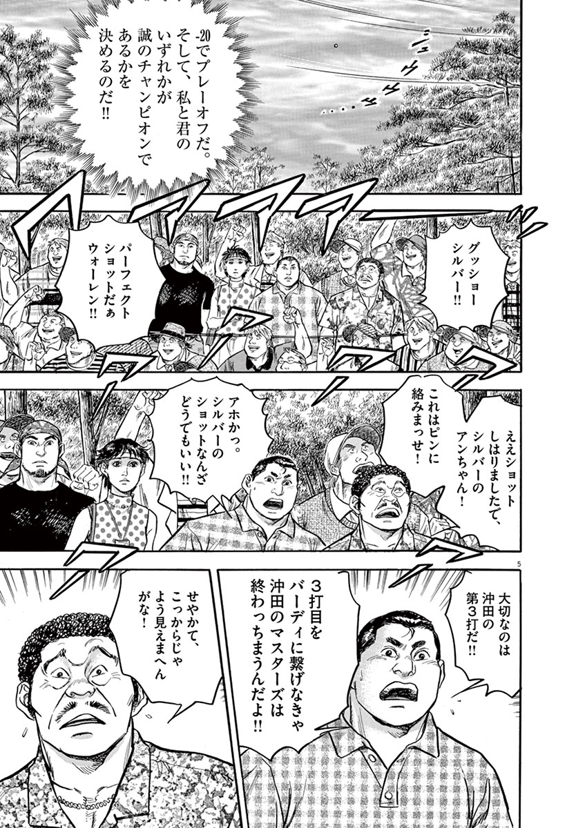 ●あらすじ/最終日の15番ホール。このホールをバーディ以上で上がらなければ優勝が潰えてしまう沖田。迷いを捨て無心で挑む第3打目、左足をかばうため、両足を揃えたスタンスでスイングしたショットは、無回転ボールとなり、見事グリーン上に。そこへ強風が吹き、動き出したボールはカップへ吸い込まれていき…(第1話)。