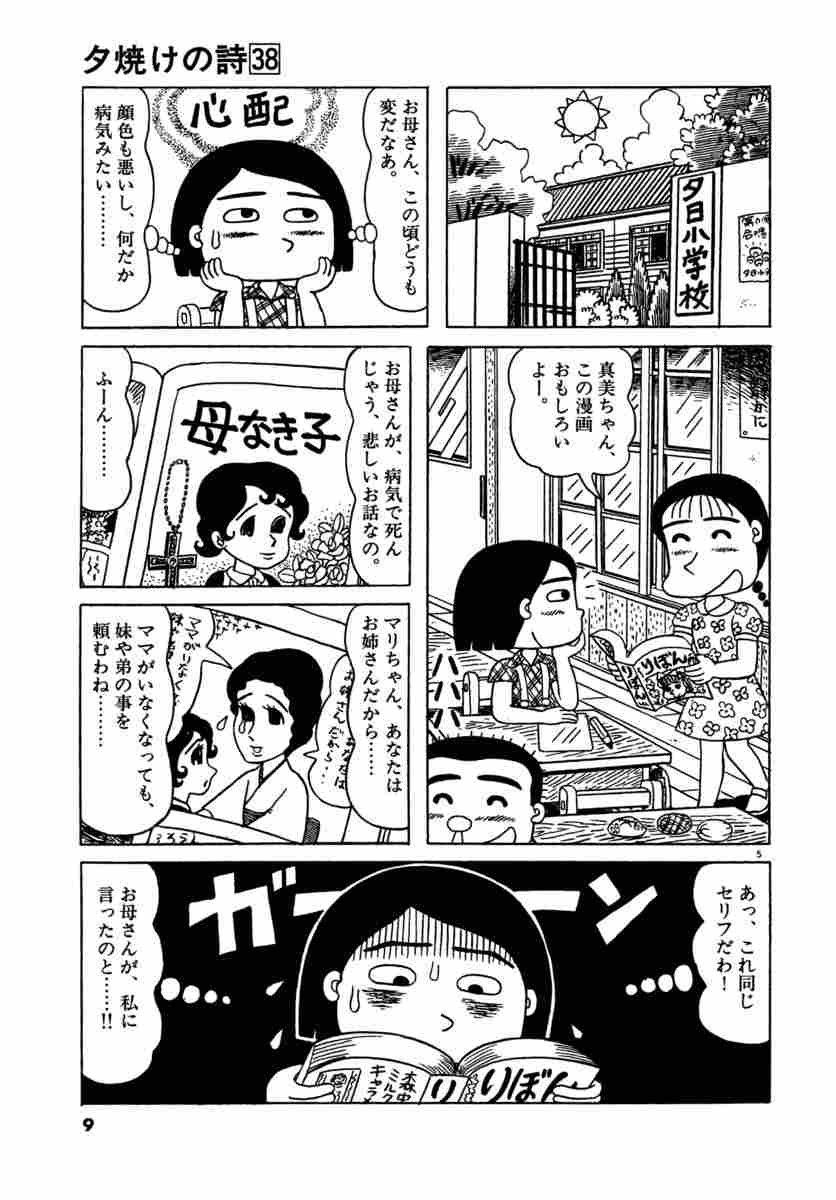 昭和30年代の世界に現代の心のふるさとを追う、珠玉のメルヘン。 ▼第1話/長女物語▼第2話/夜の便所▼第3話/マリッジブルー▼第4話/怪猫タマの亡霊▼第5話/省ちゃんと本▼第6話/スーパー仮面▼第7話/夜の魔術▼第8話/煙がみにしみる▼第9話/泣いた一平▼第10話/刑事▼第11話/カレーとジーンズ▼第12話/新年パーティー▼第13話/三丁目の奇跡▼第14話/ある雪の夜▼第15話/かみかくし▼第16話/父▼第17話/秘密の楽園 ●登場人物/鈴木則文(鈴木オートの社長。働き者で子供には少々甘い)、鈴木トモエ(優しくてしっかり者のお母さん。時に怒ると恐い)、鈴木一平(鈴木オートの一人息子。ワンパクだが、気は優しい) ●あらすじ/長女ということだけで、すぐにお母さんから家の手伝いやらされるのを真美ちゃんは不満に思っていた。ある日、いつものようにお母さんを手伝って夕食の用意をしていると、突然お母さんから「自分がいなくなっても頼むわね」と言って抱きしめられる。何のことか分からず、戸惑う真美ちゃんだったが…(第1話)▼ある夜、妹とふたりだけで留守番をしなければならなくなった長江くん。大人がいなくて、ただでさえ怖いのに、よりによって夜中にお腹が痛くなりトイレに行かなければならなくなる。すると、トイレの窓の外から女の子の歌声が聞こえて来た!(第2話)。 ●この巻の特徴/三丁目の怪人Xの正体が明かされる! ●その他のDATA/昭和30年代風物詩~くみ取り便所(第2話)、餅(第13話)、鏡開き(第13話)、かくれんぼ(第15話)、防空壕(第17話)