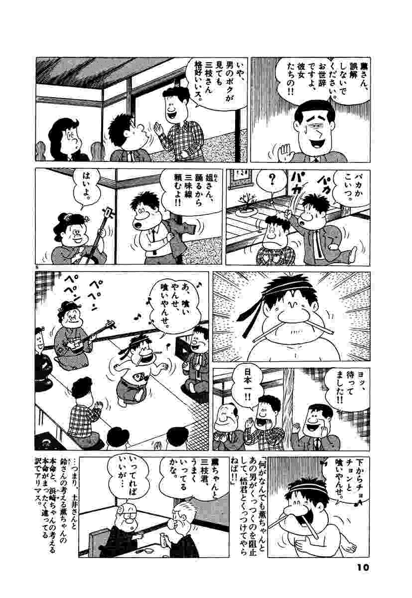 ご存じ“釣りバカ”ハマちゃんとスーさんが繰り広げる珍騒動!! ▼第1話/アモーレ・ラメール・アイ・ナメール▼第2話/彼は私の大本命▼第3話/ポスト薫ちゃん▼第4話/以心伝助▼第5話/佐々木さん的『生きる』▼第6話/紛れもなく佐々木です▼第7話/生ある限りキミと釣るらん▼第8話/生かせるものなら▼第9話/カエルに睨まれた蛇 ●主な登場人物/浜崎伝助(釣りバカで万年ヒラのペケサラリーマン)、鈴木一之助(鈴木建設社長。伝助の影響で釣りバカに)、浜崎みち子(伝助氏には過ぎた明るく賢い奥さん)、浜崎鯉太郎(伝助、みち子の可愛いひとり息子)、佐々木和男(鈴木建設取締役兼営業本部長兼営業部第三課課長) ●あらすじ/一之助と光三から、薫と三枝との仲を取りもつように頼まれた伝助。「お任せあれ」とばかりに奔走するが、どうも薫の相手を間違えているようで…(第1話)。▼娘の薫は三枝と結婚するものとばかり思っていた光三は、突然悟と結婚すると言われて大爆発! 烈火の勢いで、一之助と伝助の所に怒鳴り込む!!(第2話)。 ●本巻の特徴/本巻では、会社の人事に右往左往させられる佐々木と秋山の奮闘ぶりが描かれている。 ●その他の登場人物/超エリートの新営業三課長・土井薫(第1、2、3、4、5、6、7、8、9話)、丸菱銀行頭取で薫の父親・土井光三(第1、2、3話)、薫の幼なじみ・川島悟(第1、2、3話)、企画会社・バード社長・三枝圭吾(第1、2話)、鈴木建設専務・秋山(第6、7、8、9話) ●その他のデータ/鯛釣り(第2話)、ハヤ釣り(第7話)、ヤマメ釣り(第8話)▼裏表紙の伝助釣り講座~カマス