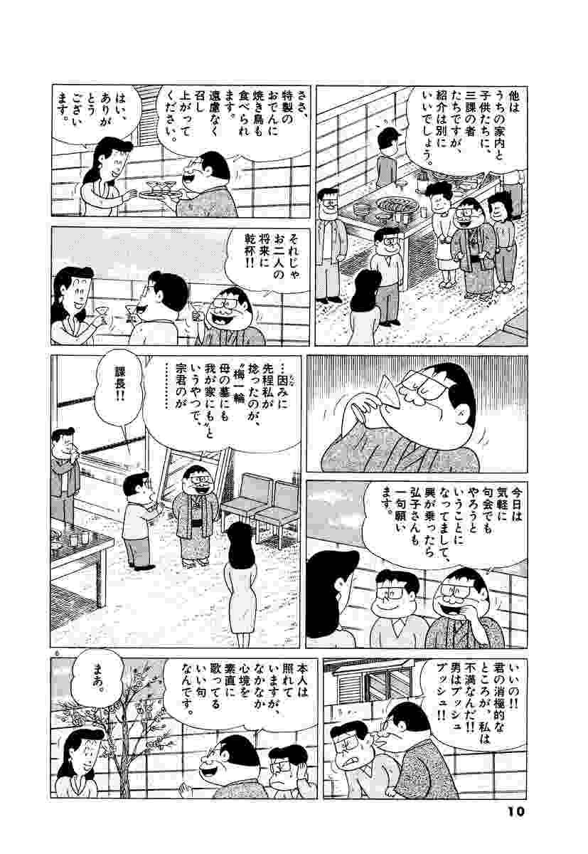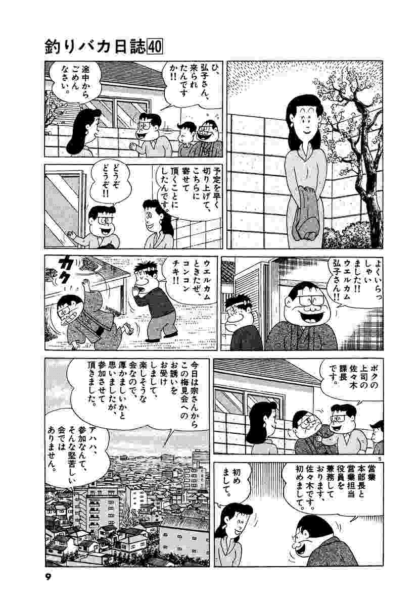 ご存じ“釣りバカ”ハマちゃんとスーさんが繰り広げる珍騒動!! ▼第1話/梅一輪サンマ七輪▼第2話/雲の上下 春うらら▼第3話/社長の意次第(イシダイ)▼第4話/佐々木さんの天下り先!?▼第5話/ウチの頭(ヘッド)はなってない▼第6話/天まで上がれ、佐々木さん▼第7話/・窓外族・って!?▼第8話/最高の手土産▼第9話/運命の君 ●主な登場人物/浜崎伝助(釣りバカで万年ヒラのペケサラリーマン)、鈴木一之助(鈴木建設社長。伝助の影響で釣りバカに)、浜崎みち子(伝助氏には過ぎた明るく賢い奥さん)、浜崎鯉太郎(伝助、みち子の可愛いひとり息子)、佐々木和男(鈴木建設取締役兼営業本部長兼営業部第三課課長) ●あらすじ/柔らかな日差しが心地よい、小春日和のとある休日。佐々木さんの家では、営業三課の人を集めて・梅見会&イモ煮会・が開かれている。三課のホープ・宗優介と丸菱銀行常務の娘・弘子を結婚させたい佐々木さんは、ふたりをくっつけようと躍起になる。一方、宗の恋人・久美子も美しくて賢い弘子に気後れしてしまい…(第1話)。▼イシダイ釣りにすっかりはまったハマちゃん。ゴールデンウイークも家族そっちのけでスーさんと海に出掛る(第4話)。 ●その他の登場人物/鈴建営業三課のホープ・宗優介(第1、2、3話)、鈴建営業三課で宗の恋人・久美子(第1、2、3話)、丸菱銀行常務の娘・高木弘子(第1、2、3話) ●その他のデータ/イシダイ釣り(第5、8、9話)▼裏表紙の伝助釣り講座~ヤリイカ