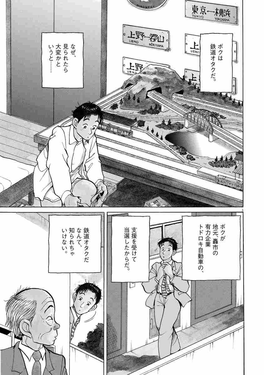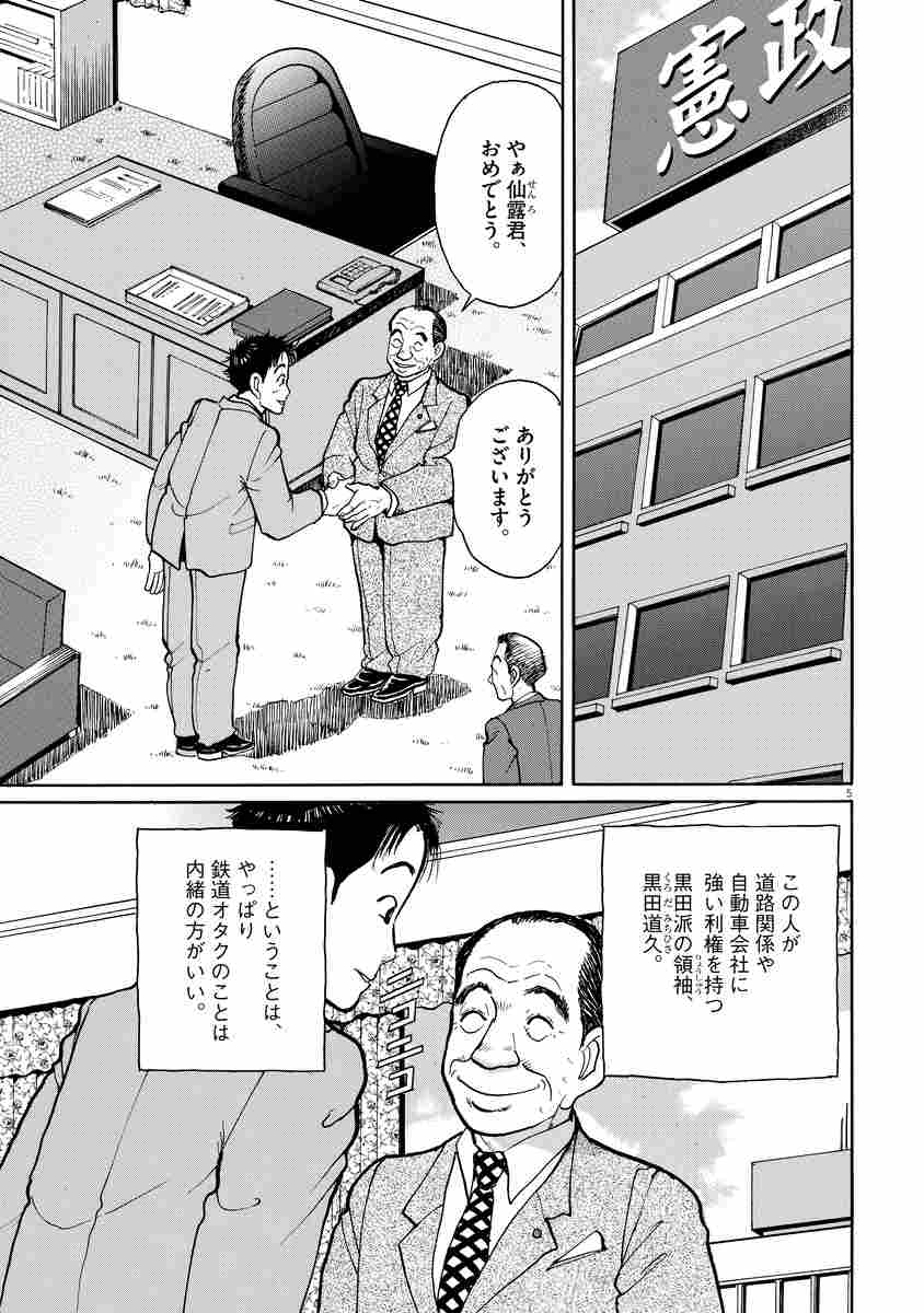 ●あらすじ/仙露鉄男。元フリーターで鉄道オタクの28歳。代議士だった父の急死により、その気もないのに選挙に担ぎ出されて当選した新米議員である。父も所属していた派閥のボス・黒田から、票固めのため、赤字線である土井中鉄道の廃止派の支援を命じられた鉄男は、鉄ヲタであることを隠し、道路族の一員として土井中駅へと出発するが…!?(第1話)
