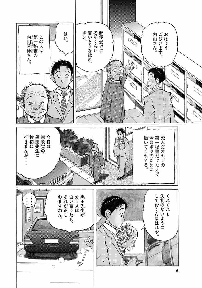 ●その他の登場人物/内山芳仲(鉄男の第一秘書。父の代からの秘書で、新人議員の鉄男に政治家のノウハウを教え込む)、黒田道久(鉄男の父も所属していた与党・憲政党黒田派のボス。道路や自動車関係に利権を持つ)、広成真希(野党・民衆党の新人議員。鉄男への対抗意識は相当に強い)