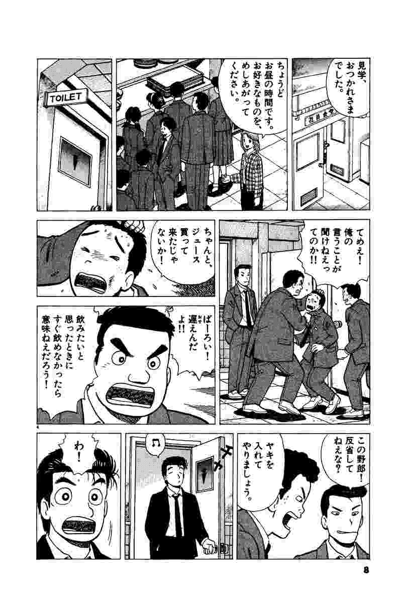 「食」ブームを巻き起こし、アニメ、映画化された大人気コミック! ▼第1話/いじめを許すな!・前編、中編、後編(軍鶏料理、赤飯饅頭)▼第2話/串カツ論争(串カツ)▼第3話/山岡の講演(苺のショートケーキ、鯛のかぶと煮、トロ焼き、お粥)▼第4話/鉄板焼の心がけ(ステーキ、サヤインゲン焼き、生シイタケ焼き、ガーリックライス)▼第5話/よもぎの春(沖縄風牛のモツ鍋、よもぎ団子)▼第6話/二木家の離乳食・前編、後編(ミルク・プディング、カスタード・プディング、カボチャのきんとん、レア・チーズケーキ、おろしリンゴ、牛乳葛餅) ●登場人物/山岡士郎(東西新聞文化部員・膨大な食の知識を持つ。東西新聞の壮大な企画「究極のメニュー」の作成を担当)。栗田ゆう子(東西新聞文化部員・夫の山岡とともに「究極のメニュー」を担当する)。海原雄山(名だたる陶芸家にして、食の探求者。「美食倶楽部」主宰。山岡の実父)。 ●あらすじ/東西新聞社に中学生が社会科見学に訪れた。山岡はその中に同級生からいじめを受けている子を発見するが、教師は何も言わない。結局自殺未遂まで図ったその子を預かった山岡は、いじめを克服すべく彼に、相手が死ぬまで闘う激しい闘鶏を見せた後、軍鶏をご馳走する。おいしいものを食べ、少年はすっかり元気になるが、山岡は彼の思惑とは逆に、軍鶏みたいにはなるなと言う…(第1話)。▼金上にそそのかされて、東西新聞と帝都新聞が一触即発の危機に陥ったことを踏まえ、局長レベルでも親交を深めようと、東西新聞の小泉局長と帝都新聞の秀沢局長が食事をすることになった。しかし、串カツの食べ方で口論となり…(第2話)。 ●その他の登場キャラクター/中松警部(第1話)、快楽亭ブラック(第1話)、はる(第1、3~5話) ●その他DATA/表紙写真~軍鶏料理[調理/炭焼料理「炭火」]