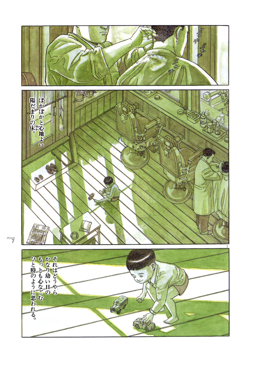 父親の死によって初めて父の優しさを知った男の心の機微を描く。 ▼第1話/陽だまりの床▼第2話/春の面影▼第3話/緋色の記憶▼第4話/新しき小径▼第5話/美しき母▼第6話/夏の思い出▼第7話/別離▼第8話/もうひとりの母▼第9話/1枚の写真▼第10話/伯父の言葉▼第11話/めぐる春秋▼第12話/故郷の春 ●主な登場人物/山下陽一(郷里・鳥取を離れ東京で暮らすサラリーマン。故郷には結婚以来14~15年帰っていない)、山下武(陽一の父親。鳥取で理髪店を営む。陽一が小学生の頃離婚している) ●あらすじ/陽一が郷里を想うとき、いつも決まって想い浮かぶ情景がある。早春の早い午後、幼い陽一は父の営む理髪店の床の上に座りこんで遊んでいる。ぽかぽかと心地よい陽だまりの床。それはどうやら、かなり幼い日のもっとも心なごむひとときのように思われる…。父が死んだとの連絡を受けた陽一は、郷里の鳥取に帰ることになった。十数年ぶりの郷里はすっかり街並みが変わってしまい、なかなか郷里に帰ってきたという実感が湧かない。それでも実家に近づくにつれ、記憶にある景色が目につくようになってきた…(第1話)。▼郷里を捨て十何年も家に帰ってないうえに、通夜にも間に合わなかった陽一を、親戚の人々は暖かく出迎えてくれた。陽一が幼い頃に離婚し、その後も仕事一筋だった父親に深いわだかまりを感じていた陽一は、いたたまれない気持ちになった。しばらくすると、実の母親の弟である大介伯父が、陽一の知らない両親の若い頃の話を始めた…(第2話)。