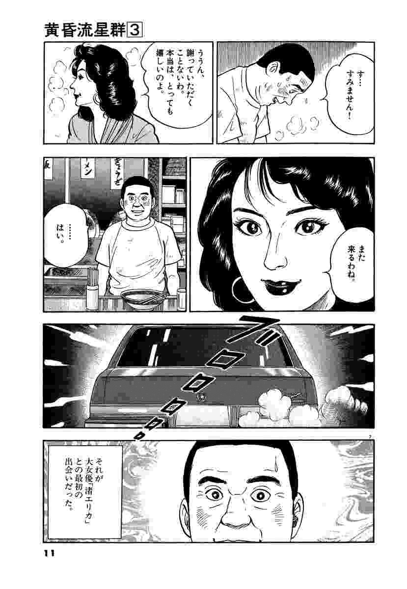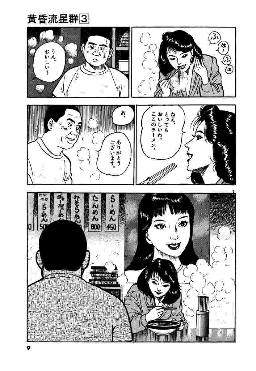 人生の黄昏時、熟年期、老年期の・恋・を弘兼憲史が描く話題作! ▼第1話/星より秘かに▼第2話/星よりの使者 ●登場人物/▼第1話…徳田和夫(ラーメン店「一番」店主、20年前はアイドルだった渚エリカの当時からの大ファン)、渚エリカ(アイドル出身で、現在は女優)▼第2話…江口克彦(77歳の元公務員)、谷村緋紗子(41歳で銀座のクラブ「花かご」のママ) ●あらすじ/第1話…徳田の店に20代のころから大ファンだった渚エリカが、偶然にラーメンを食べにきた。以来、何度も店を訪れ、彼女のアイデアから「渚ラーメン」という人気商品も生まれた。しかも酒のうえのこととはいえ、一度だけ体の関係も……。エリカのためならなんでもでする決心を固めた徳田は、彼女が犯してしまった殺人の罪をかぶり服役する。出所後、徳田は行方不明のエリカを捜し出すが、彼女はすでに老人性の痴呆症で、徳田のことを覚えていなかった。だが彼女は「渚ラーメン」の味だけは忘れていなかった。▼第2話…緋紗子は、10年以上愛人関係を続けてきた江口から、71歳になる彼の祖父、克彦を誘惑してみないかとの賭けをもちかけられる。その賭けにのり、誘惑に成功した緋紗子は、いつのまにか71歳とは思えないほどエネルギッシュな克彦に惚れ込んでしまう。克彦も彼女と会うことで元気を取り戻し、ふたりは結婚へ。緋紗子の存在は、江口家に活気をもたらせる。だがある日、江口家を襲った強盗と克彦がもみ合って以来、克彦の体調が少しずつ悪くなり、ついに緋紗子と公園を散歩中に死んでしまう。江口家で家族の温かさを実感した緋紗子は、今度は自分も温かい家族を作ると言い残して、江口家を去っていった。