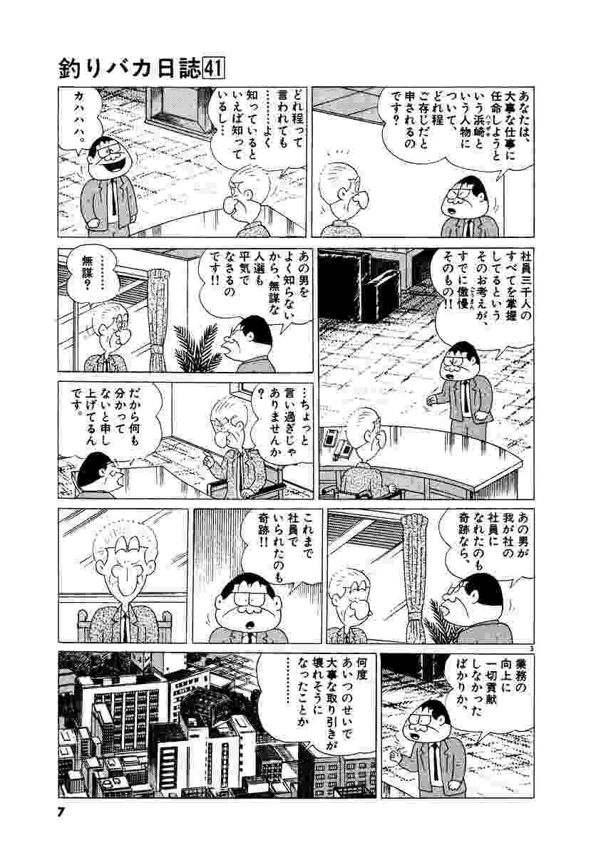 ご存じ“釣りバカ”ハマちゃんとスーさんが繰り広げる珍騒動!! ▼第1話/教育係は誰だ!?▼第2話/サム君ご指名!?▼第3話/噂の二人▼第4話/骨まで愛して?▼第5話/いざ、勝負!!▼第6話/縁起を担げ▼第7話/意外なハンティング▼第8話/元気でさようなら▼第9話/佐々木さん危機一髪 ●主な登場人物/浜崎伝助(釣りバカで万年ヒラのペケサラリーマン)、鈴木一之助(鈴木建設社長。伝助の影響で釣りバカに)、浜崎みち子(伝助氏には過ぎた明るく賢い奥さん)、浜崎鯉太郎(伝助、みち子の可愛いひとり息子)、佐々木和男(鈴木建設取締役兼営業本部長兼営業部第三課課長) ●あらすじ/タイから研究生が来ることになった営業三課。怪我をして釣りに行けないスーさんは、釣りに行けないようにと彼の教育係を伝助を指名するが、伝助に不安を感じる佐々木は、自分が教育係となるという。しかし…(第1話)。 ●本巻の特徴/タイから研修に来た若きエリートが、ハマちゃんたちによって日本サラリーマンの平均的な日常(?)を知る様が描かれる。 ●その他の登場人物/タイ国からの研修生・サム・アティクタイ(第1、2、3、4、5、6話) ●その他のデータ/イシダイ釣り(第3、5、6、7、8、9話)▼裏表紙の伝助釣り講座~ニジマス