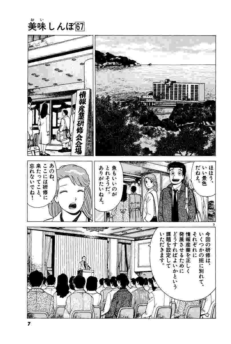 「食」ブームを巻き起こし、アニメ、映画化された大人気コミック! ▼第1話/舌で味わう!!▼第2話/ジャガイモ嫌い!!▼第3話/新しい隣人▼第4話/ポン酢の秘密!?<前編><後編>▼第5話/真の国際化企画<前編><中編><後編>▼第6話/新しい家族●登場人物/山岡士郎(東西新聞文化部員・膨大な食の知識を持つ。東西新聞の壮大な企画「究極のメニュー」の作成を担当)、栗田ゆう子(東西新聞文化部員・夫の山岡とともに「究極のメニュー」を担当する)、海原雄山(名だたる陶芸家にして、食の探求者。「美食倶楽部」主宰。山岡の実父)。●あらすじ/新聞、テレビ、ラジオ、出版、広告業など、情報産業各社の若手社員による研修会に参加することになった山岡とゆう子。参加者はみな熱心で、活発な議論が交わされていた。ところが、昼食で出された“うどん”の麺の形状で意見が対立。太いか細いか、切り口が丸いか四角いかといったことで、みな自分の“うどん”が一番だと言って譲らない。会は一気に険悪なムードとなってしまい…(第1話)。▼中松警部が窮地に陥っている。山岡たちが理由を尋ねると、先日、中松の友人で汁粉嫌いの嵩杉に、「食べ物の好き嫌いを言うなんて、武士ではない。だからお前の剣道は甘いのだ」と難癖をつけ、無理矢理汁粉を食わせたところ、「今度は、お前が死ぬほど嫌いなジャガイモを食え」と言い返されたのだという。中松のあまりの愚かさに山岡やゆう子は呆れ返るが、とにかく中松が食べられるようなジャガイモ料理を作り始める(第2話)。●本巻の特徴/柑橘類の汁と醤油を混ぜたポン酢の“ポン”の意味を探る(第4話)。全国47都道府県の郷土料理を題材とした、新たな「究極のメニュー」VS「至高のメニュー」対決が始まる(第5話)。●その他の登場キャラクター/中松警部(第2話)、山岡たちのマンションの大家・尾沢(第3話)、東西新聞社主・大原(第4、5話)、団・ジュディ夫妻(第6話)●その他のデータ/表紙写真~イクラ丼、裏表紙写真~カステラ、扉写真~ユズ、カボス、スダチ