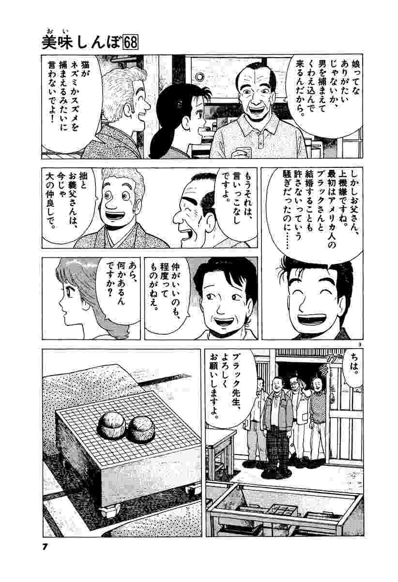 ▼第1話/噺家の心意気(団子)▼第2話/猫に ちなんだ料理(キクラゲとフキの白和え、ナマズ料理、白キクラゲのデザート)▼第3話/待望の赤ちゃん!!(おこげ、豚肉団子鍋)▼第4話/夫の愛、義父の愛…(つわり対策料理)▼第5話/父と子・前編(だし巻き玉子の田楽、完熟プチトマトのクルミたれかけ、菜の花のおひたし、サンチョイパオ、牛肉どんぶり)▼後編▼第6話/東大病を治す!?(小いもと大根の煮物)▼第7話/究極の産後食!?・前編(スグキ、鯛とネギミソ、トンカツの海苔巻き、高菜のおにぎり、コロッケおにぎり、デザートにぎり、桜島大根姿煮)▼後編●登場人物/山岡士郎(東西新聞文化部員・膨大な食の知識を持つ。東西新聞の壮大な企画「究極のメニュー」の作成を担当)、栗田ゆう子(東西新聞文化部員・夫の山岡とともに「究極のメニュー」を担当する)、海原雄山(名だたる陶芸家にして、食の探求者。「美食倶楽部」主宰。山岡の実父)。●あらすじ/団・ジュディ夫妻に続いて、ブラック・テルエ夫婦にもおめでたと聞き、さっそく駆けつけた山岡夫妻。だが、ブラックは師匠の八笑に、最近のお前の落語はなっちゃいねえと言われて大弱り。出産を控えて実家に戻ったテルエの父に付き合い、囲碁やら、団子作りやらにのめりこんでいるのが、師匠の目には気の緩みと映ってしまったらしいのだが…(第1話)。●本巻の特徴/大石夫妻に子供ができ、さらに中松警部と歌子さんにまで子供ができて、最近山岡の回りはおめでた続き。そしてなんとゆう子も妊娠していることがわかる。だが、山岡はあまり喜んではいない様子。それは雄山が自分にしたことを自分も生まれてくる子供にしてしまうのではないかと思い悩み、父親になる自信がないと言い出す始末。一方、ひどいつわりに苦しんむゆう子の体を気遣う雄山は、孫への愛情からか? ゆう子を思いやる気持ちか、かつて妻に出したものと同じ料理でこれを解決。孫の誕生は、山岡と雄山の関係を変えるのか!?●その他の登場キャラクター/快楽亭ブラック(第1、4話)、大石警部(第2、4話)、中松警部(第2、4話)、団・ジュディ夫妻(第4話)、山岡たちのマンションの大家・尾沢(第7話)