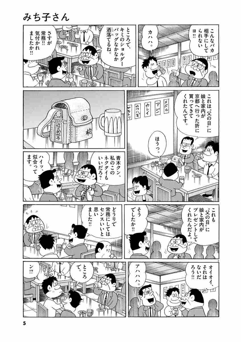 釣りバカ日誌の番外編はみち子さんが主人公 仕事はそっちのけで釣りのことしか頭にない×(ペケ)社員で、釣りバカの我らがハマちゃんの良妻賢母のみち子さん。本編と違って番外編は、浜崎家の出来事をみち子さんの視点で描く家庭内コメディーです!!
