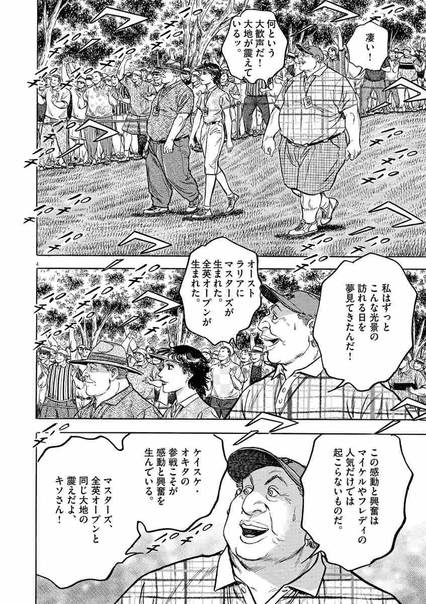 単行本第56集から始まったオーストラリアオープン編も、いよいよ最終日に突入!!オーストラリアの若手No.1マイケル・ネルソンに首位を許している沖田圭介ですが、ここからの巻き返しに注目してください。バリーがいかさまをしようが、マイケルが遺恨を晴らすために躍起になろうが、己のスタイルを貫き通す沖田……その姿に光は差すのか!?御期待ください。