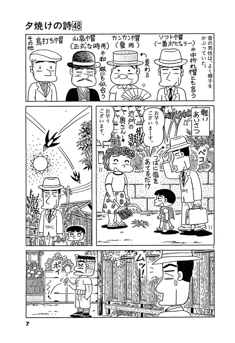 ▼第1話/お父ちゃんの帽子▼第2話/釣忍▼第3話/星祭▼第4話/幽霊修業▼第5話/鰻の蒲焼▼第6話/トンボ釣り▼第7話/宿題騒動記▼第8話/転校生▼第9話/タクマ先生▼第10話/夜の音▼第11話/オート三輪▼第12話/フォロー・ミー▼第13話/今日は何の日?▼第14話/クリスマス イブ▼第15話/旅路▼第16話/抹殺指令▼第17話/コマ回し●あらすじ/昭和30年頃の男性は、外出するときによく帽子をかぶっていて、その種類もソフト帽、カンカン帽、山高帽、鳥打ち帽など多種多様であった。今日もソフト帽をかぶって出かけるお父ちゃんを、憧れのまなざしで見つめる息子は、ある日こっそりとその帽子を持ち出すのだが…(第1話)。▼花町母子は、釣忍のように日陰でひっそりと生きている女性。息子の雄太郎も、父親がなかなか家に帰ってこないことを疑問に思っていた。ある日、ご近所さんの立ち話を聞いてしまった母子は、「おめかけさん」と陰口されていることを知り…!?(第2話)▼七夕の日を迎え、フランケン先生の理科の授業で、彦星と織姫の星座について勉強した聡子。読書に飽きたという病気の弟・高志のために、竹やぶから竹を取ってきて飾り付けすることにしたのだが…(第3話)。●その他のDATA/昭和30年代風物誌~ソフト帽(第1話)、釣忍(第2話)、ジャムパン(第8話)、オート三輪(第11話)、文鎮(第13話)、コマ(第17話)