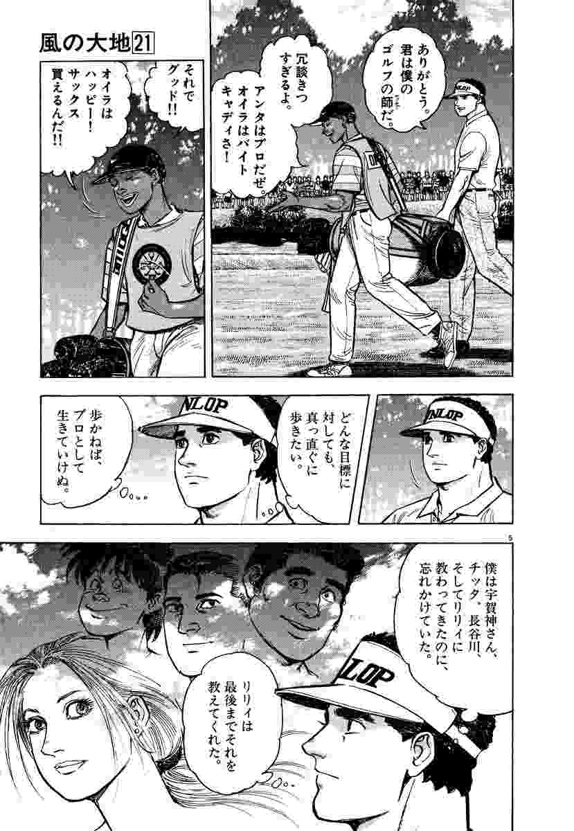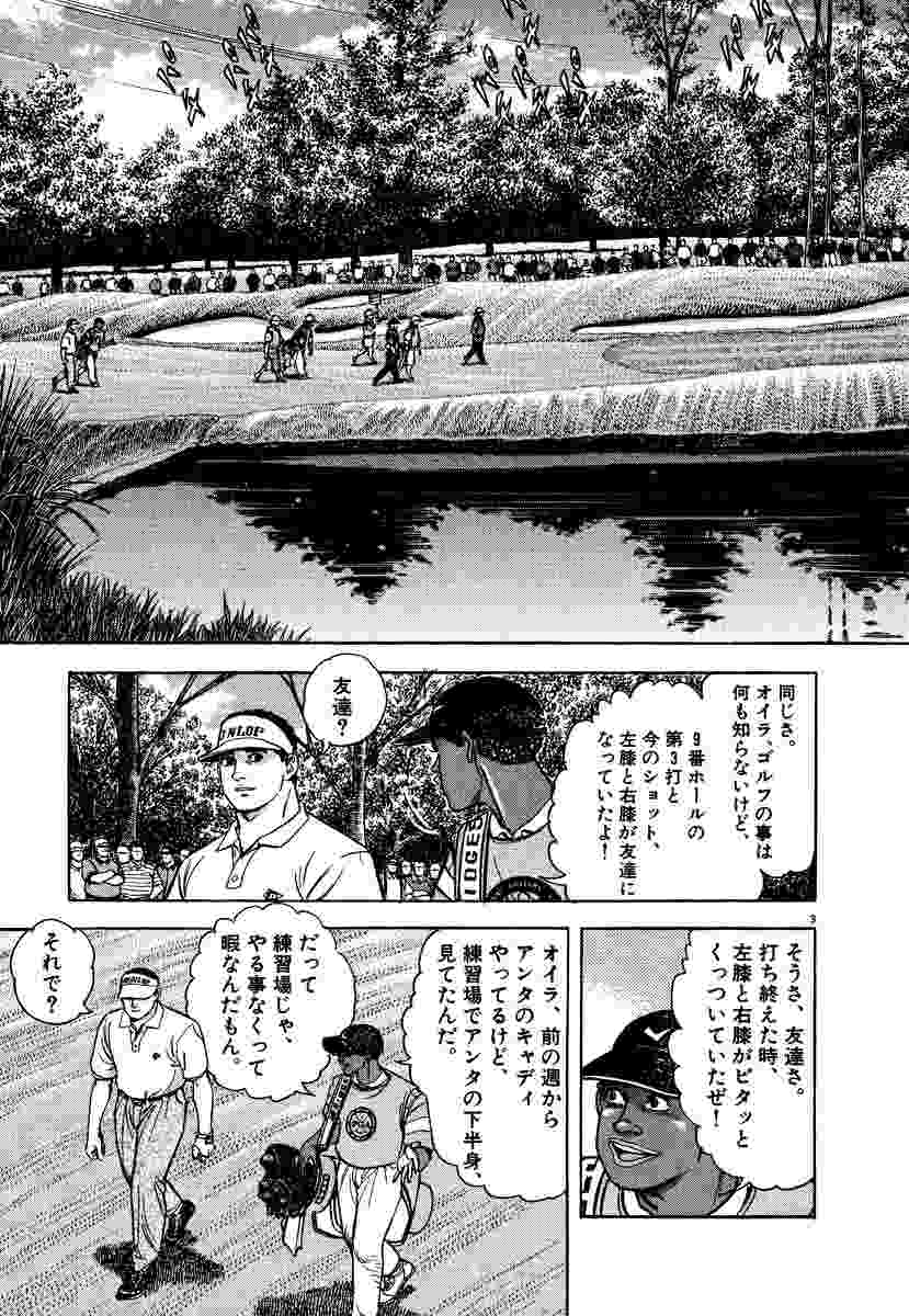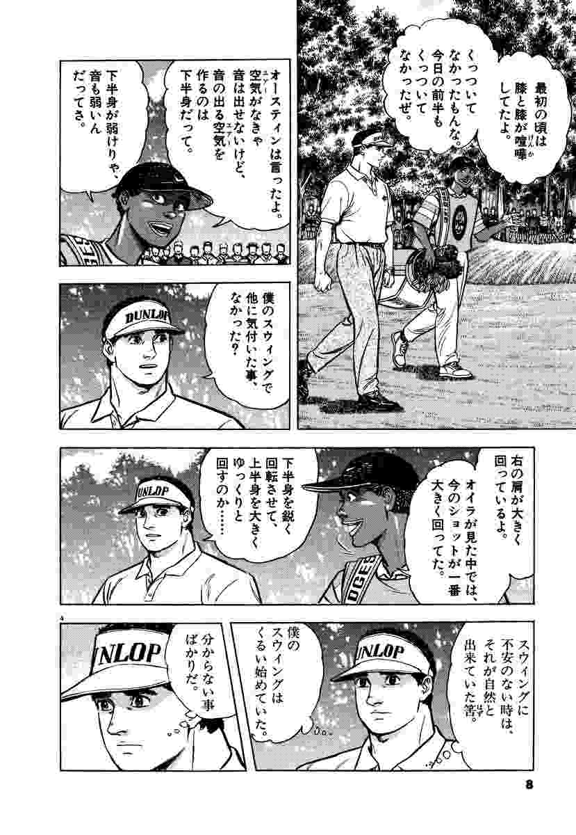 ▼第1話/真っ直ぐな道▼第2話/落球▼第3話/夢を託す人▼第4話/雷鳴▼第5話/サスペンデッド▼第6話/キャディ交代▼第7話/笹笛の鳴る川▼第8話/追いかける者▼第9話/フルショット●登場人物/沖田圭介(「鹿沼カントリークラブ」初のプロゴルファー)、シルバー・スコット・ウォーレン(天才ゴルファー。プロ歴7戦全勝。大財閥の御曹司)、グレゴリー・オースティン(下町のジャズハウスに出演中のサックス奏者)、トム(沖田のキャディを務める少年。ゴルフのことは何も知らない)●あらすじ/全米プロ初日、沖田はスランプを乗り越えるキッカケをつかむため、レディスシャフトのクラブを使うことにする。これが良かったのか、15番ホールではイーグルを取り、復活の兆しが見えてきた沖田だったが、16番ホールでの第一打を林の中に入れてしまう。(第1話)▼林の中に入った沖田のボールを必死に探すキャディのトム。しかし、皮肉にも探していた沖田のボールが風のいたずらでトムのてのひらに落ちてしまう!!(第2話)●本巻の特徴/2日目には、傘を取りに行こうとしたトムに落雷というハプニングが起こった。トムの代わりにキャディを務めることになったのは、グレゴリー。果たして、沖田の運命の風向きは変わるのか !?